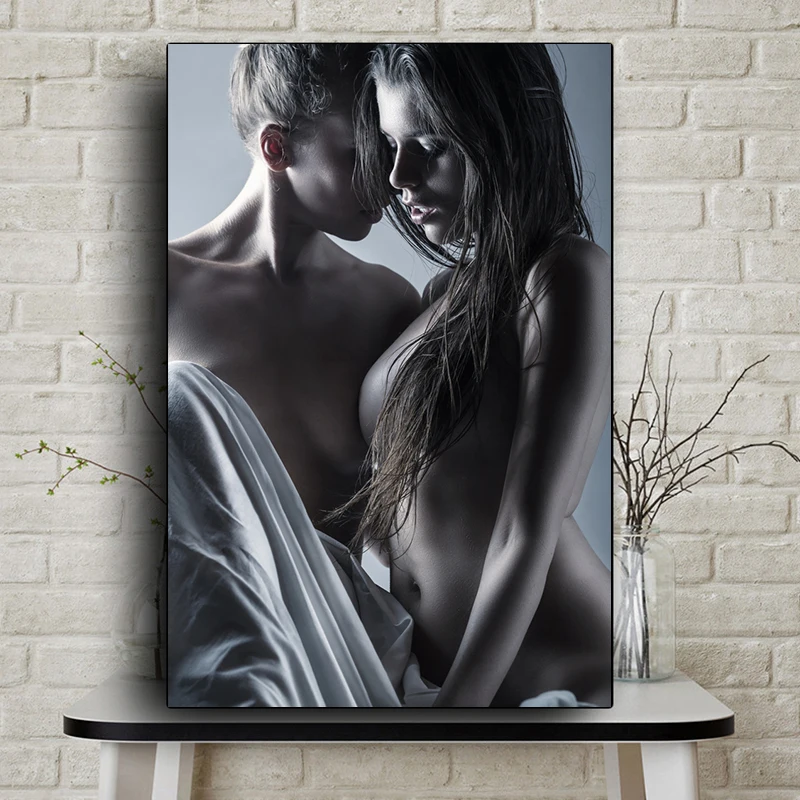 Картина на холсте Черно-белая сексуальная двойная Обнаженная женщина плакат печать Настенная картина Куадрос для украшения гостиной