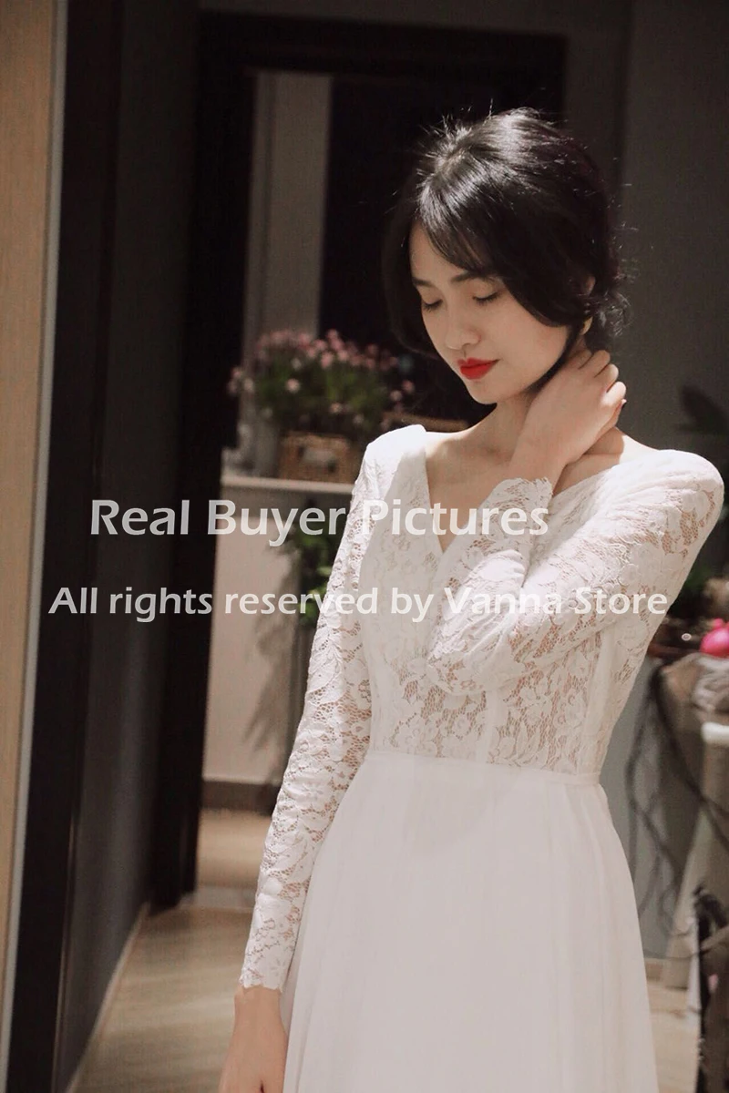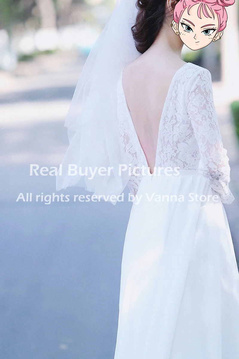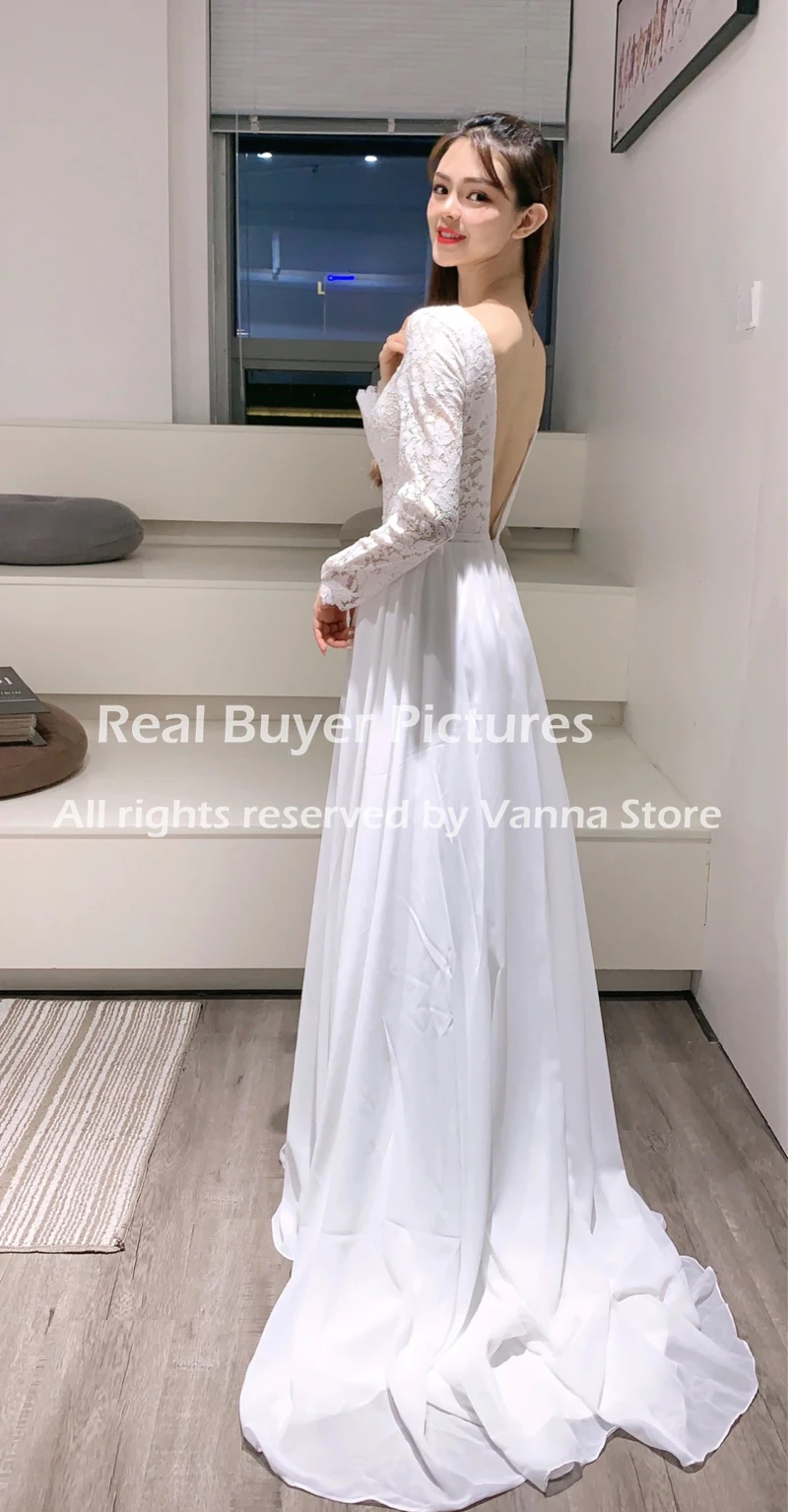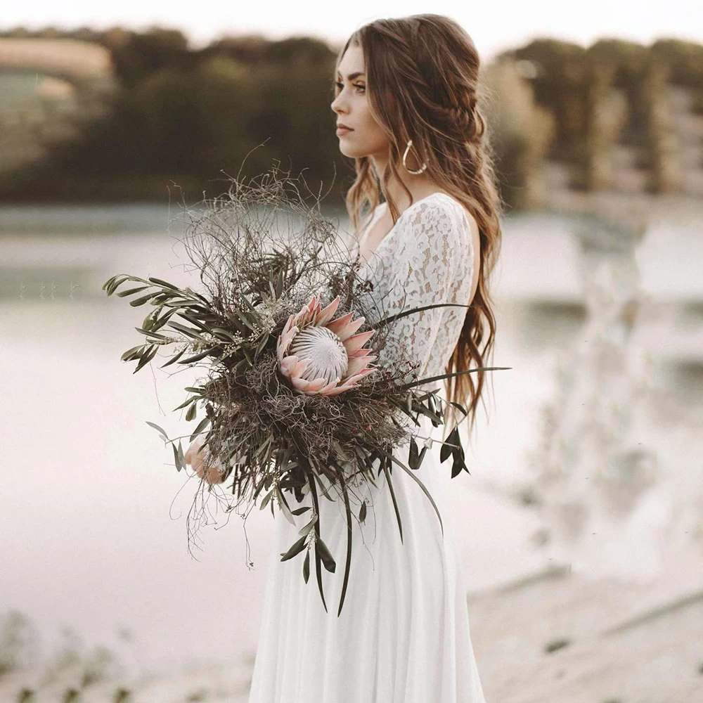 Кружевное свадебное платье в стиле бохо, с длинными рукавами, Пляжное, ТРАПЕЦИЕВИДНОЕ, с открытой спиной, размера плюс, с V-образным вырезом, шифоновое, в деревенском стиле, индивидуальное