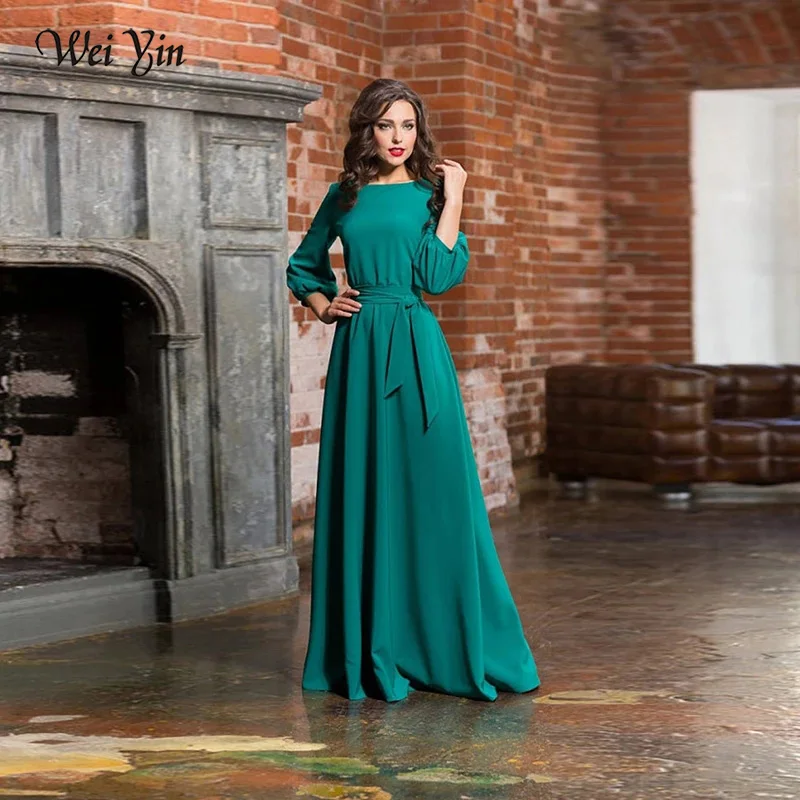 Цветные шифоновые вечерние платья Weiyin на заказ, длинные платья с длинным рукавом и поясом, платья до пола для выпускного вечера, платье для особых случаев