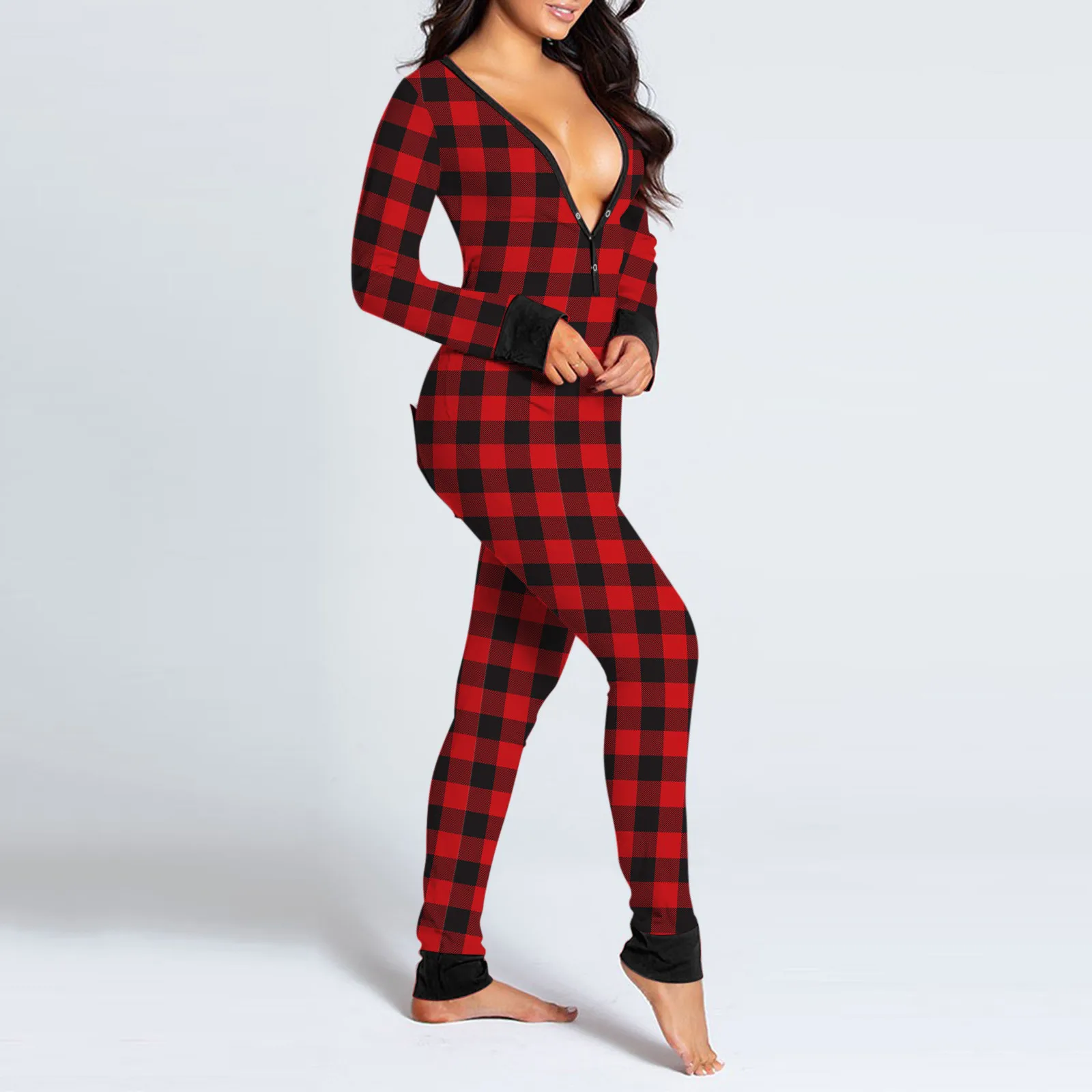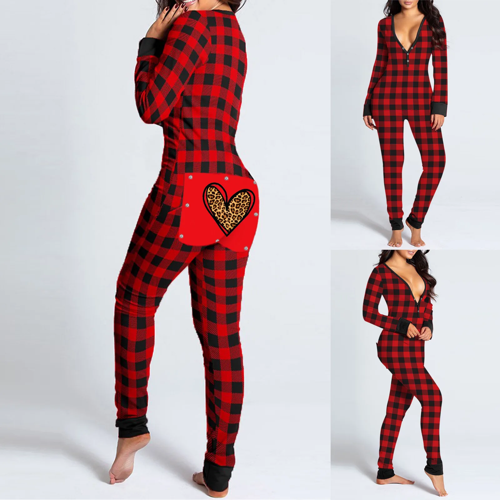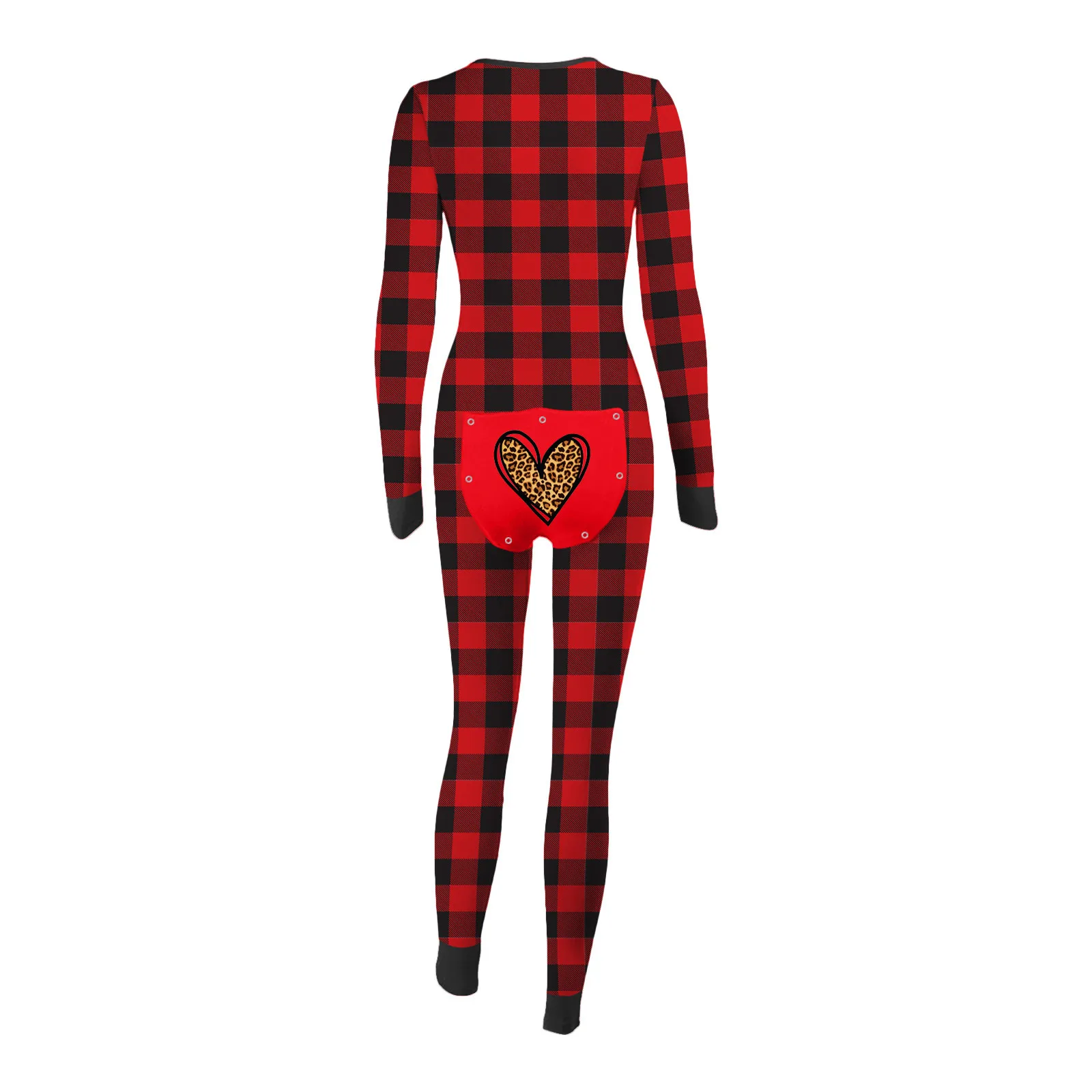 Женские комбинезоны, клетчатые пижамы с принтом, нижнее белье, на пуговицах, функциональные, с клапаном, взрослые пижамы, комбинезон, женские комбинезоны
