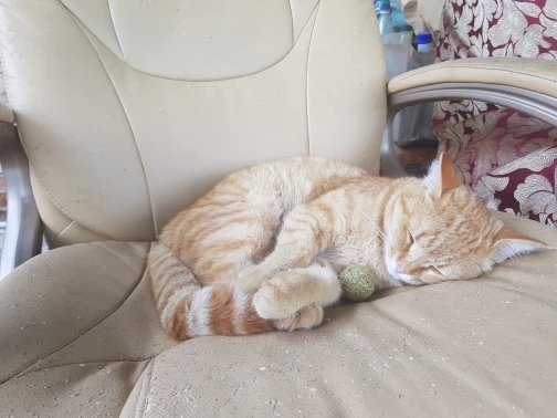 Товар приехал быстро. Шарик небольшой, кошка пару раз погоняла его по полу и больше на него не реагирует, ей не интересен. Шарик ни чем не пахнет и при разломе тоже не привлек внимание кота.
