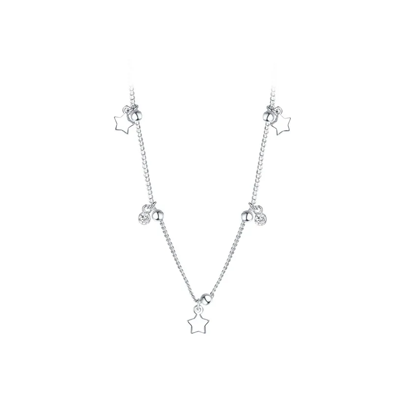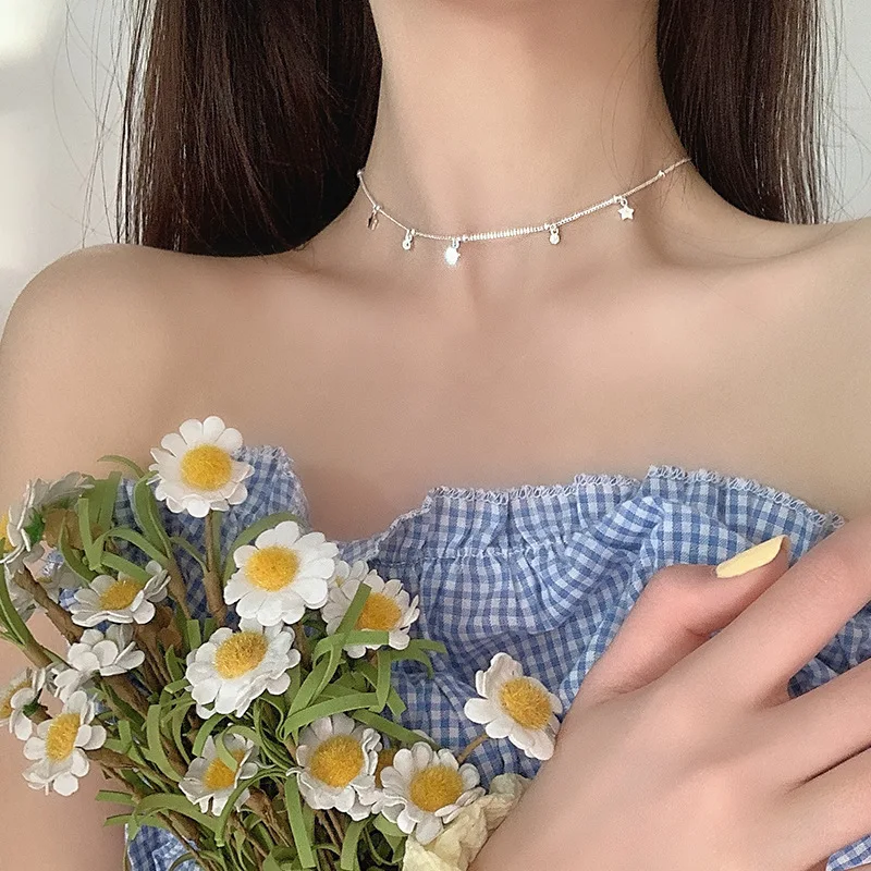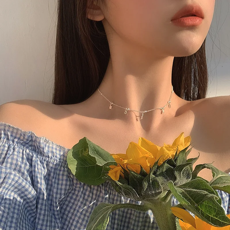 Ожерелье-чокер серебряного цвета с подвеской-кристаллом, звездой и круглыми бусинами, массивное свадебное ювелирное изделие для женщин и девушек dz140