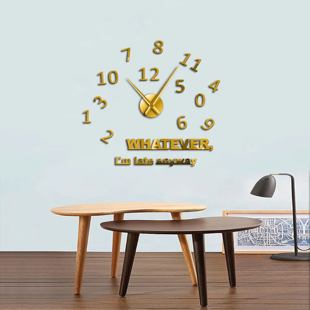 Что я поздно в любом случае вдохновляющие художественная стена с цитатой крупными Цифрами Настенные Часы для самостоятельной сборки Гостиная настенные часы Procrastinators подарки