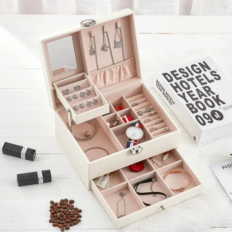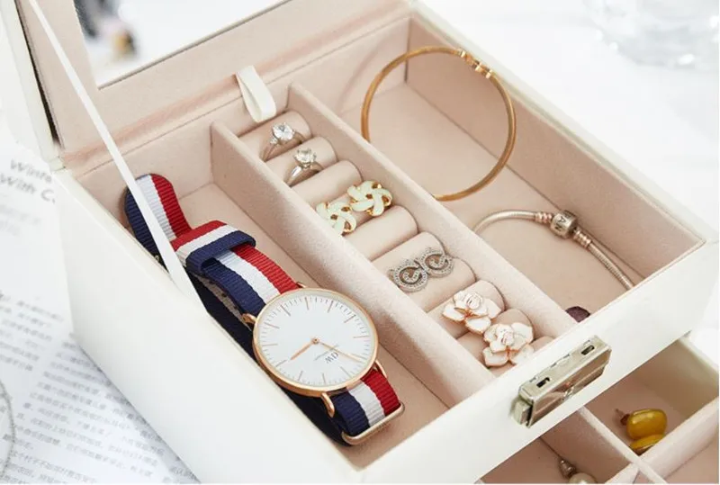 Кожаная Шкатулка для ювелирных изделий, модный дизайн, футляр для ч...