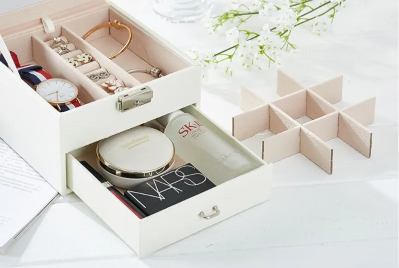 Шкатулка для ювелирных изделий, кожаная, большой емкости, темпераме...