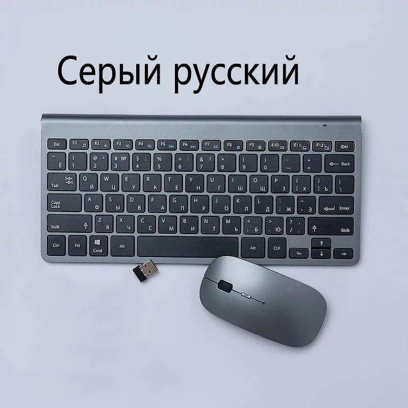 Тонкая беспроводная клавиатура и мини-оптическая мышь с крошечным usb-приемником.