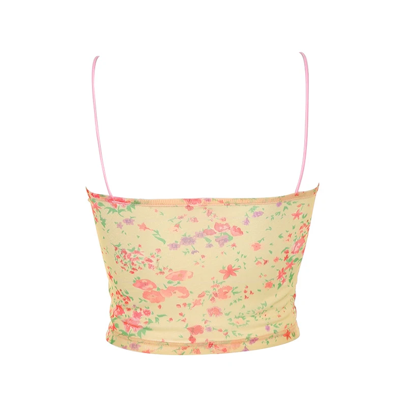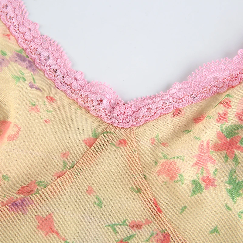 Кружевной лоскутный Топ Y2K, ребристый топ с v-образным вырезом, Женский цветочный принт, на бретельках, лифчик, сексуальный, с открытой спиной, с бантом, сетчатый топ, новинка