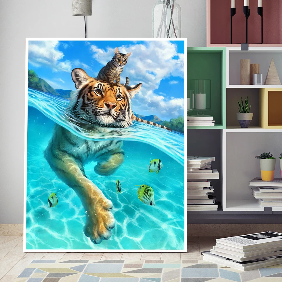 Алмазная живопись сделай сам с изображением тигра, кошки, мозаика для вышивки, полноразмерная круглая картина, домашний декор, мультяшный подарок