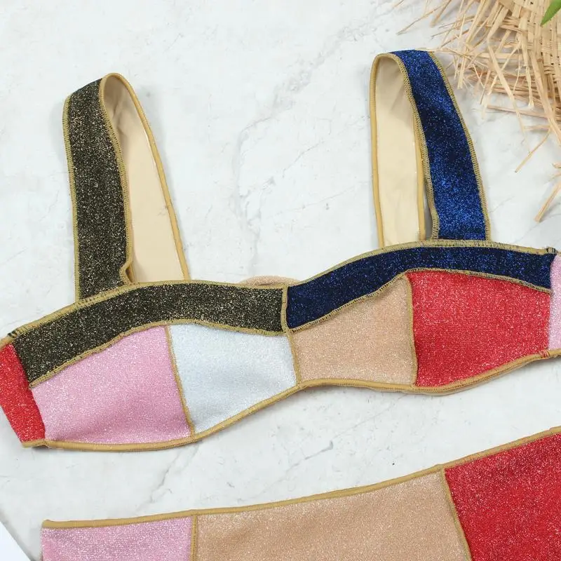 Бикини с высокой талией, женский купальник, контрастные купальники в стиле пэчворк, новинка 2021, сексуальные блестящие купальники, летняя пляжная одежда XL