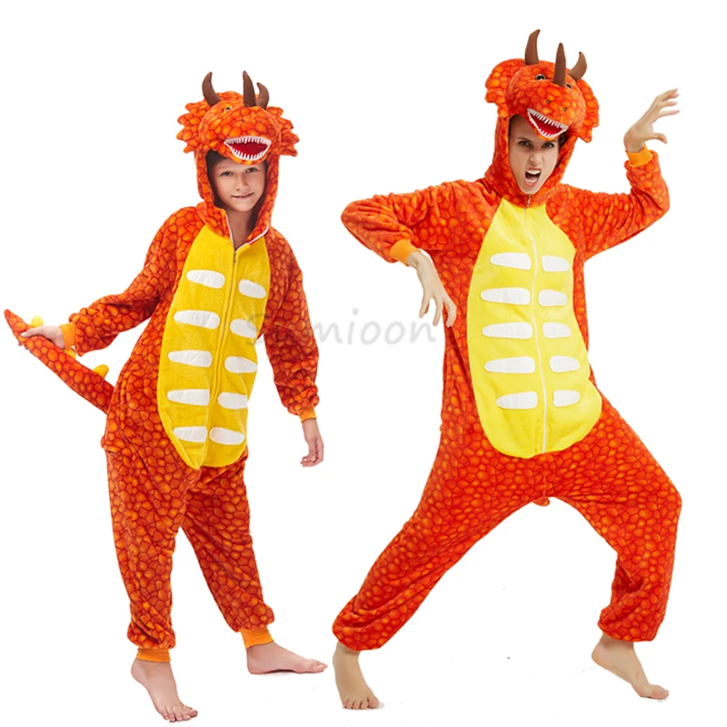 Кигуруми зимние фланелевые комбинезоны с динозавром для взрослых Пи...