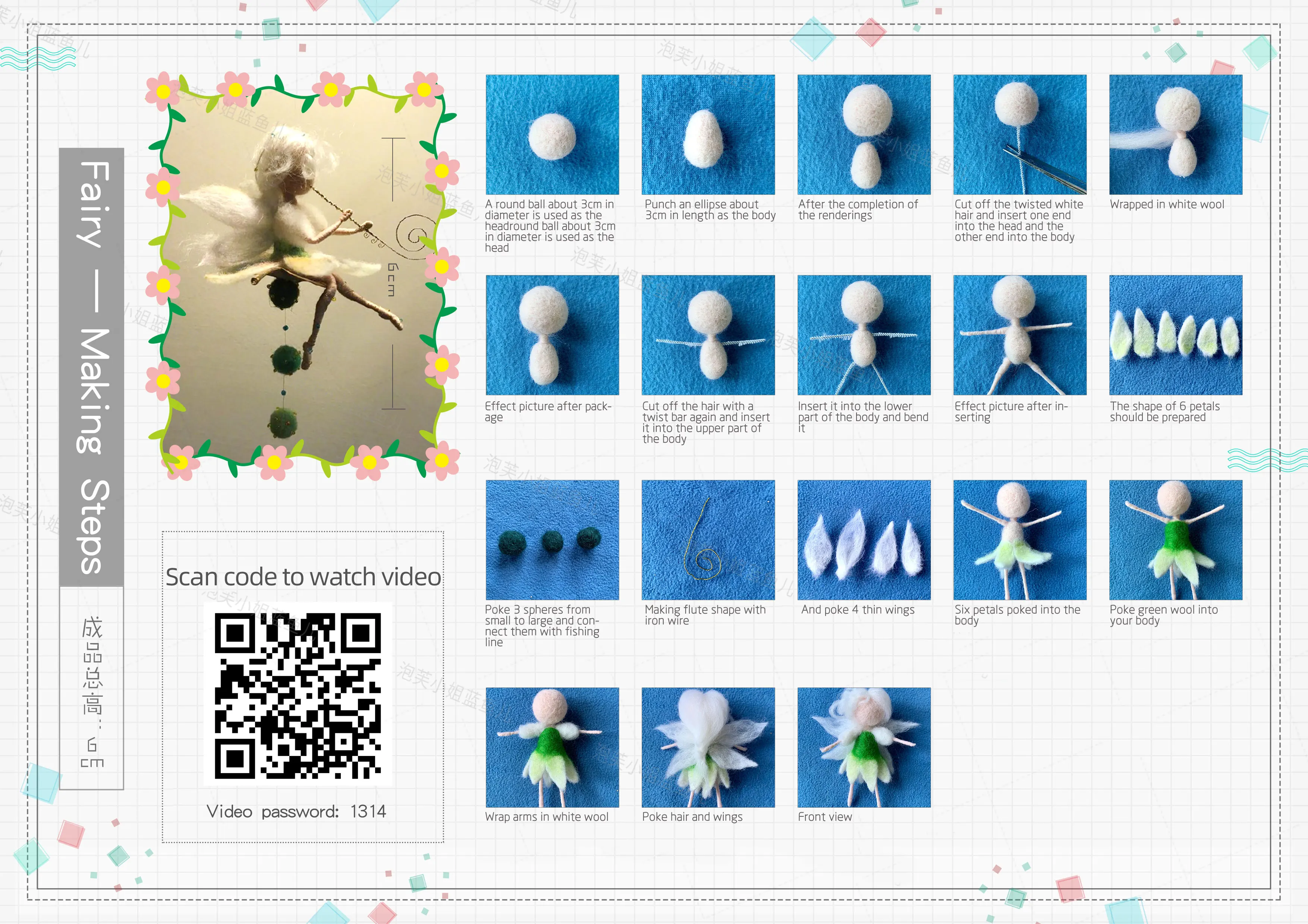 DIY маленькая фея брелок Подвеска игла валяние материал посылка Шерсть Войлок набор ручной работы подарки