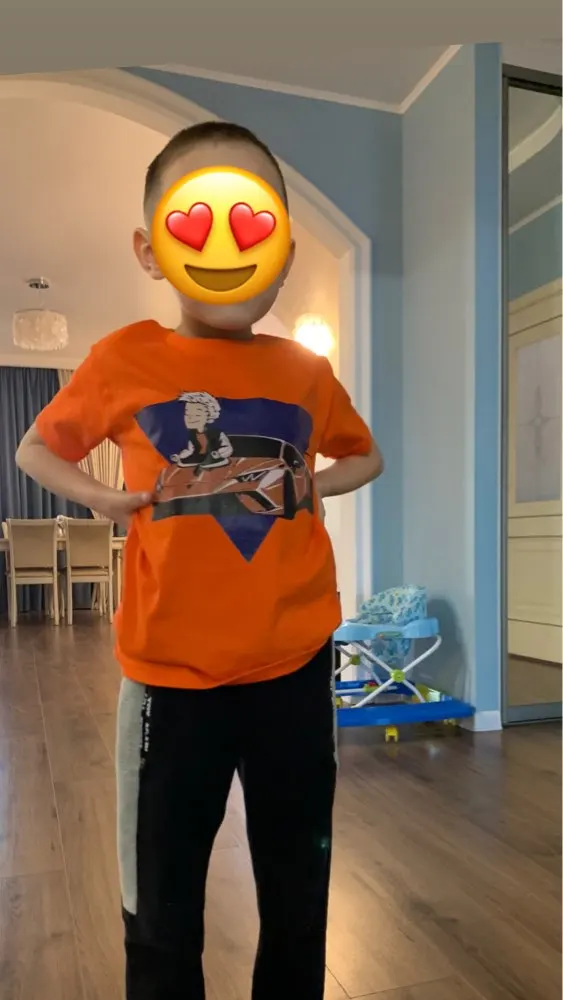 Футболка отличного качества. Сын счастлив! Принт яркий, качественный. Идёт в размер.