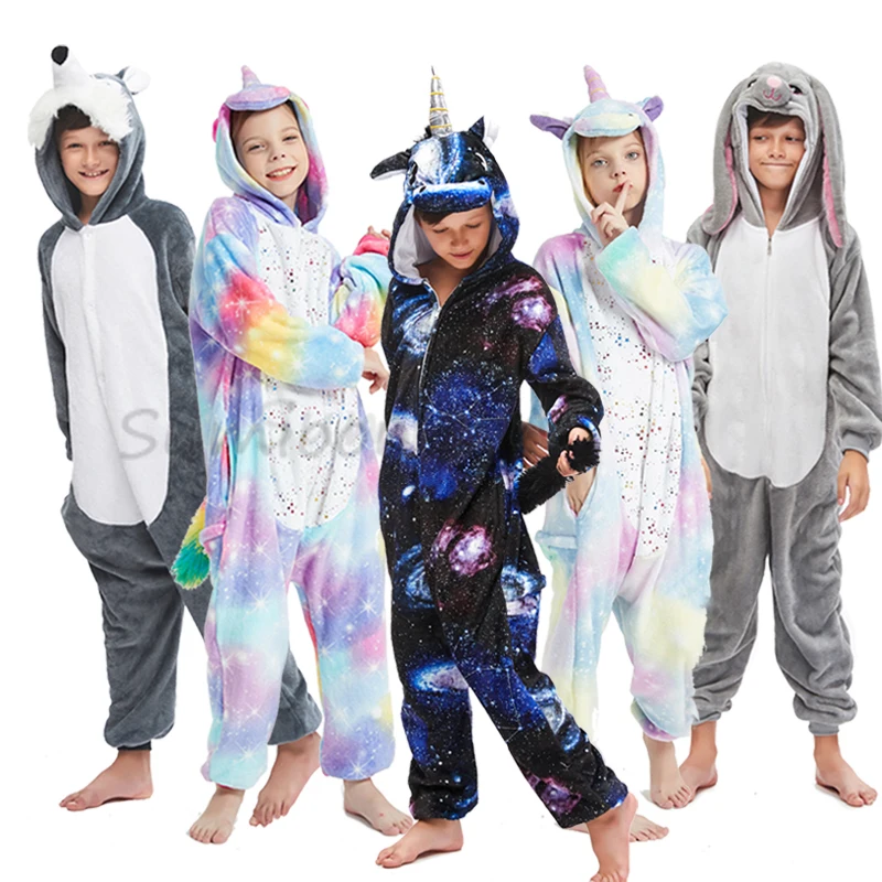 Пижама-Кигуруми для мальчиков и девочек, фланелевая, с единорогом