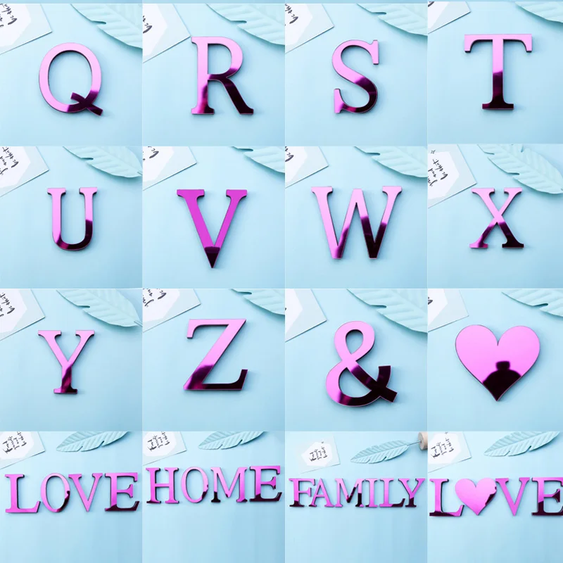 Акриловая зеркальная настенная 3D наклейка с розово-красными буквами, украшение для дома, праздничный праздник, гостиная, самодельная наклейка, художественная роспись