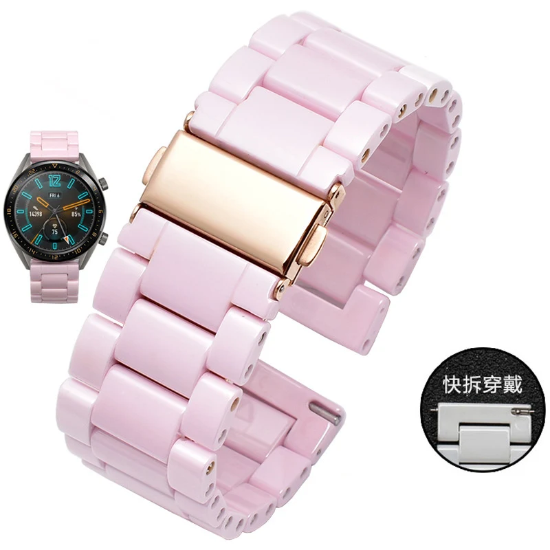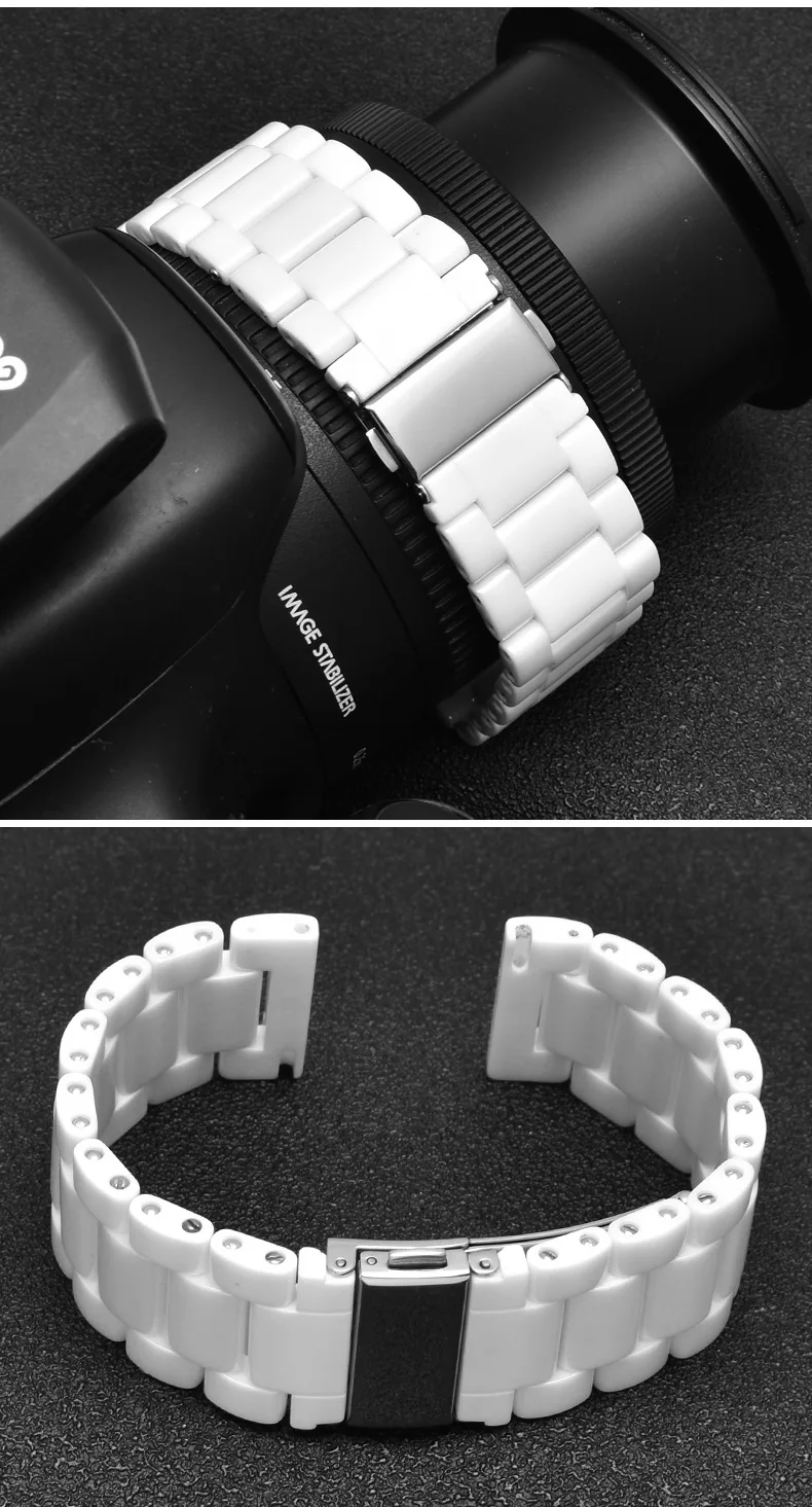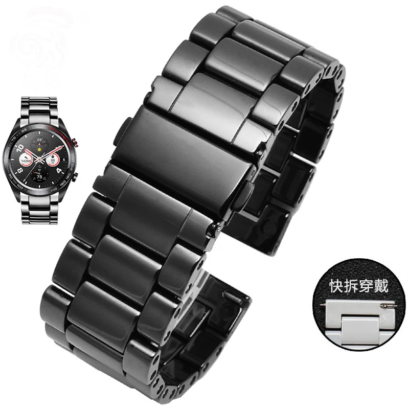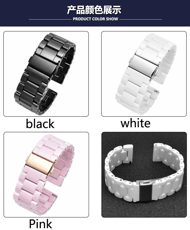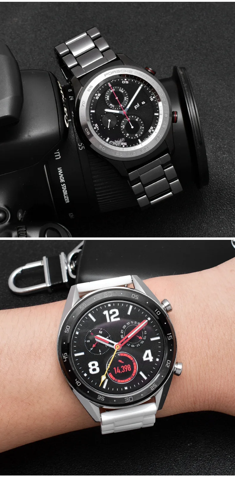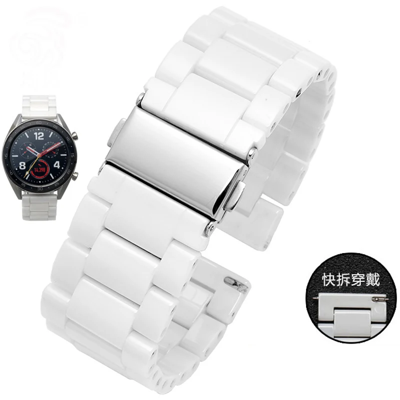 Ремешок из керамики и нержавеющей стали для Samsung s2 3 4 Huawei GT, роскошный браслет для наручных часов, 20 мм 22 мм, черный белый