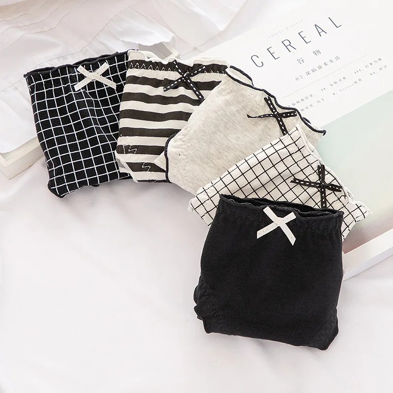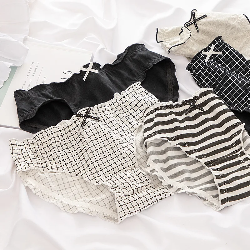 Женские дышащие трусы, черные и белые клетчатые трусы с бантом, ниж...