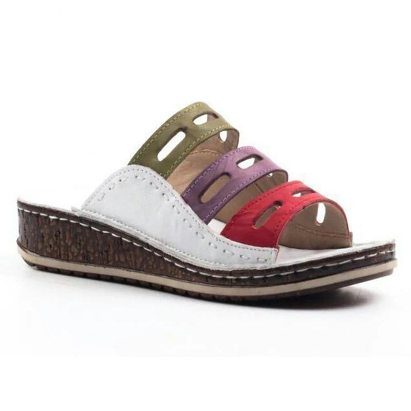 Женские шлепанцы на танкетке, летние, смешанные в стиле ретро цветн...