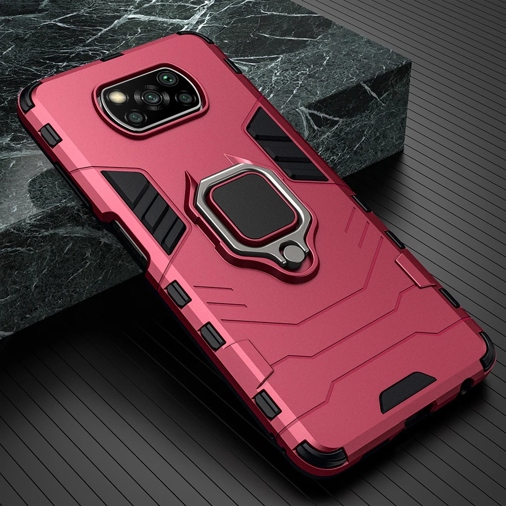 Бронированный противоударный чехол с кольцом-держателем для POCOX3, Жесткий Чехол из поликарбоната, ТПУ, гибридный чехол-накладка для Xiaomi Pocophone POCO X3 X 3 NFC