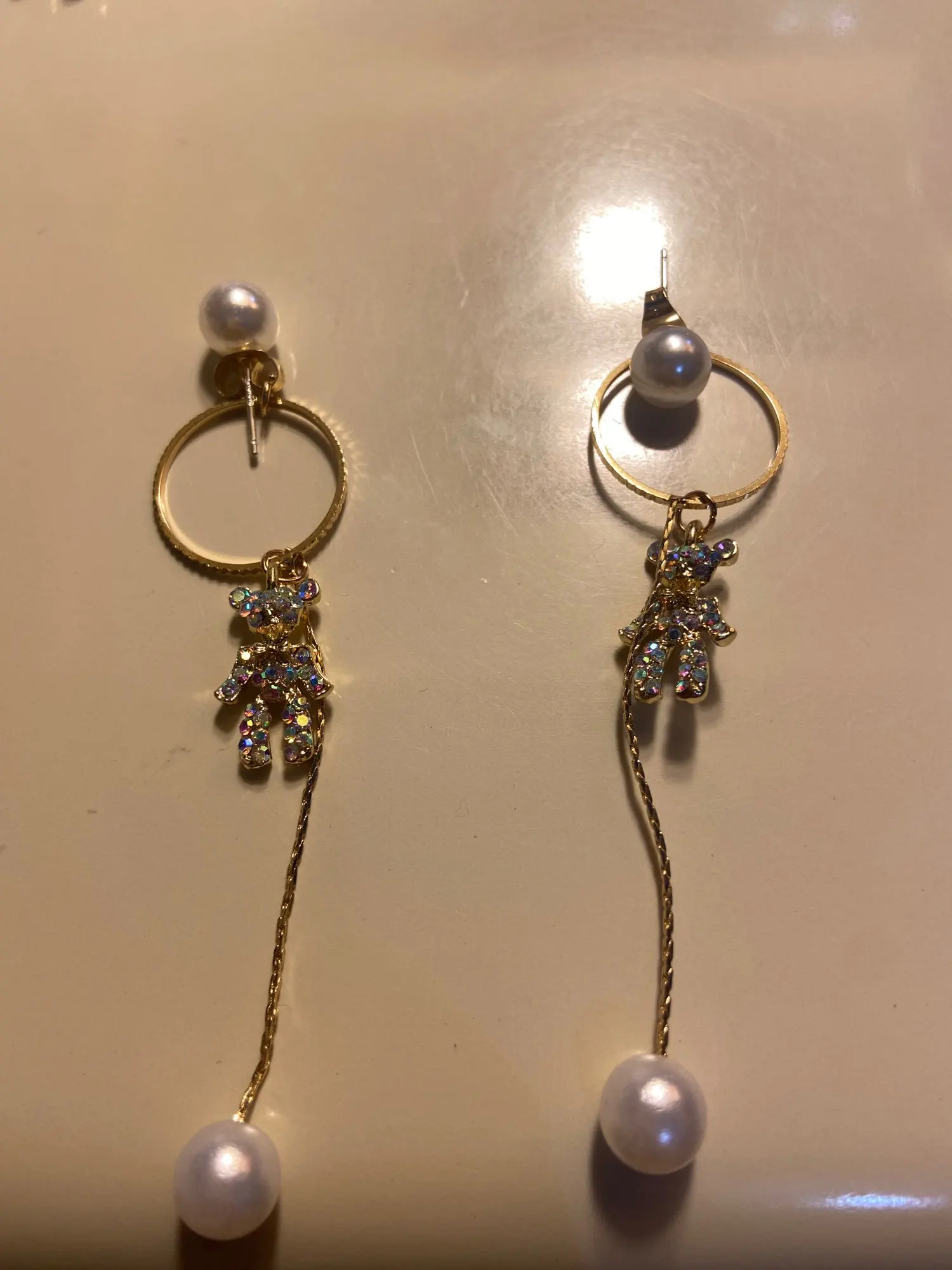 Необычные асимметричные серьги в форме мишки в форме сердца с изысканными искусственными жемчужинами