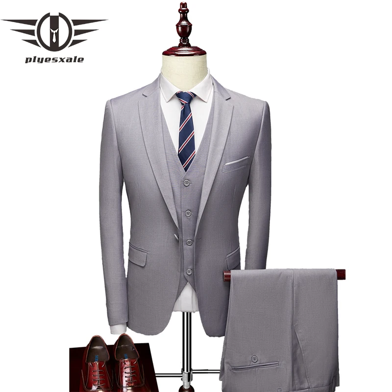 Модные фирменные мужские приталенный деловой костюм, комплект из 3 предметов Нарядные Костюмы для свадьбы для мужчин на каждый день, Официальный вечерний костюм для мальчиков, светильник, серый цвет бордовый Q1256