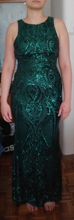 Красиво и хорошо изготовлено! Я Загружаю фотографии в дневное освещение (ярче) и в свет из ламп :) вам не нужен бюстгальтер, чтобы носить это платье. Материал эластичный, так что вы можете легко ходить и ходить :) я рост 173 см, и он идеально подходит. Доставка в Польшу занимает 2 недели.