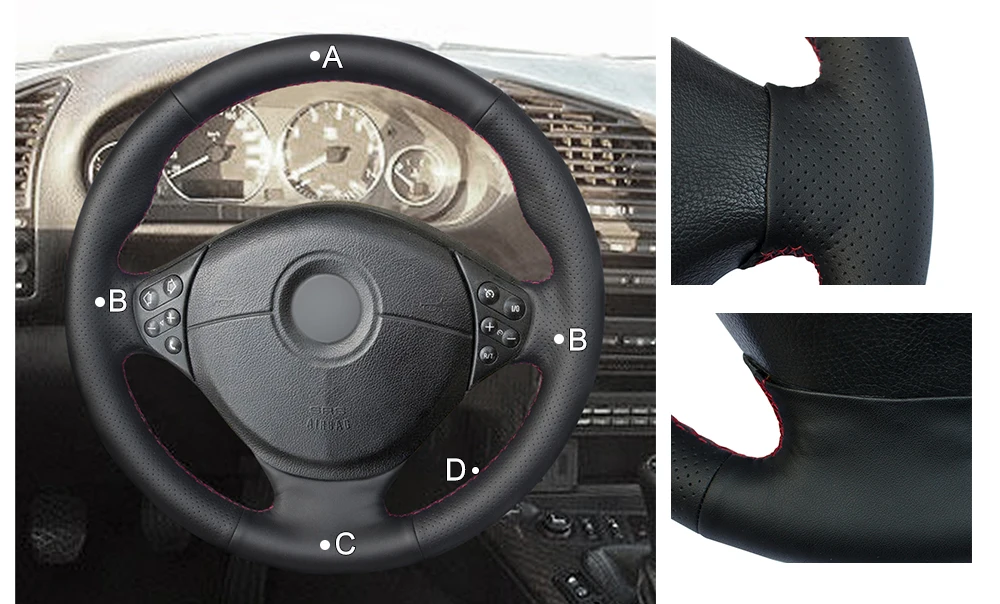 Сшитая вручную черная искусственная кожа Чехол рулевого колеса автомобиля для BMW M Sport E36 1996-2000 E39 1995-2001 Z3 M E367 E368