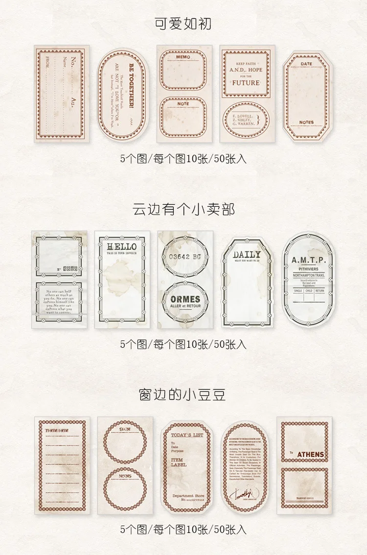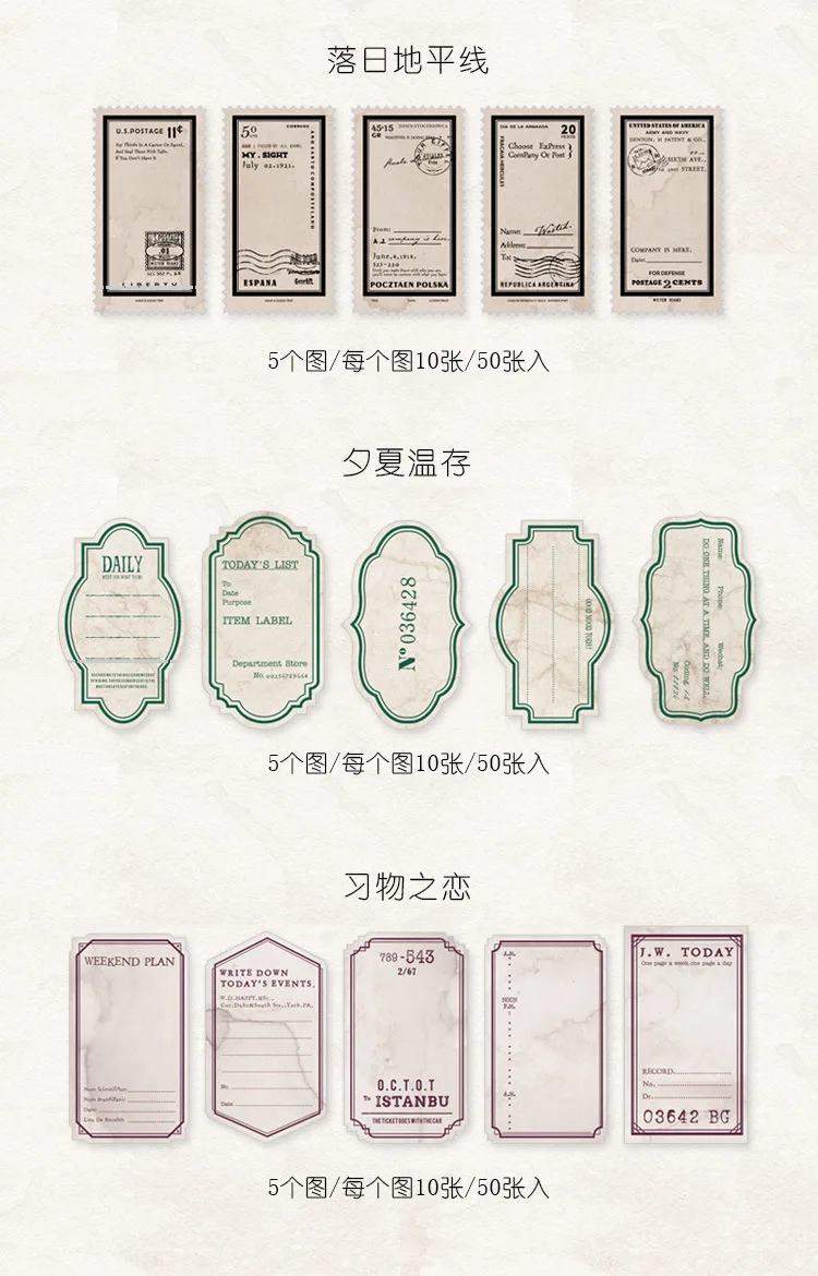 50 шт., винтажные бумажные этикетки для дневника, скрапбукинга