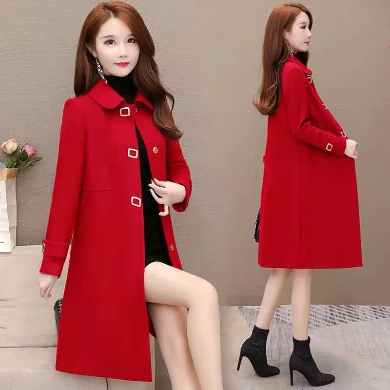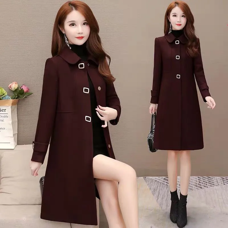 Женское шерстяное пальто средней длины, однобортное шерстяное пальто средней длины, повседневная верхняя одежда, размера плюс 4XL, R788, Осень-зима