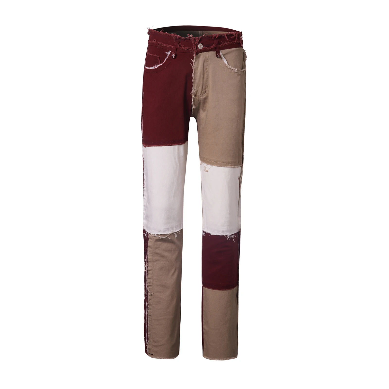 5 Цвет s, M, L для женщин в стиле пэчворк высокого качества с эластичной резинкой на талии, брюки уличная джинсы Цвет блок брюки пикантная обувь коричневого цвета с контрастной строчкой брюки