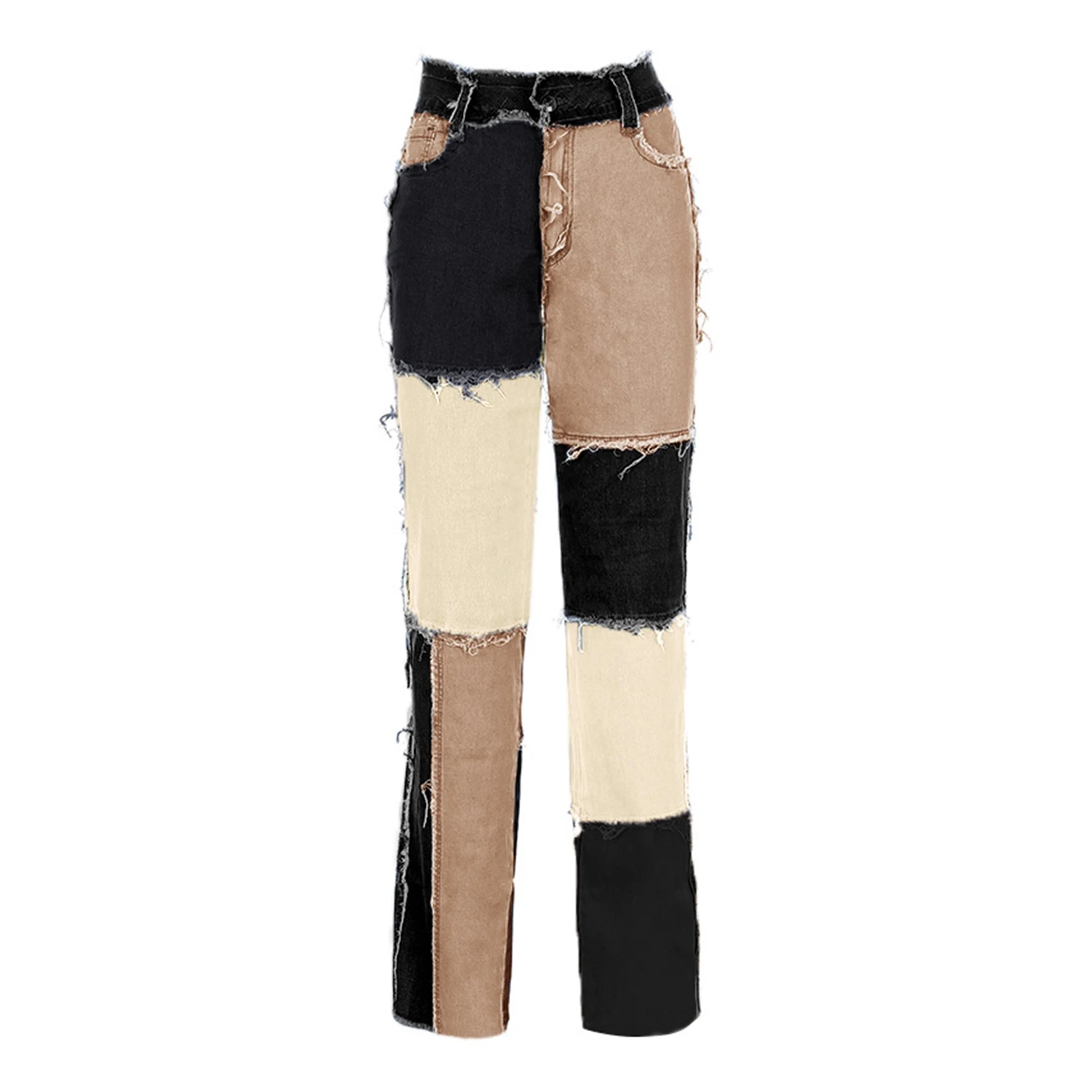 Женские прямые брюки в стиле пэчворк с высокой талией, 5 цветов
