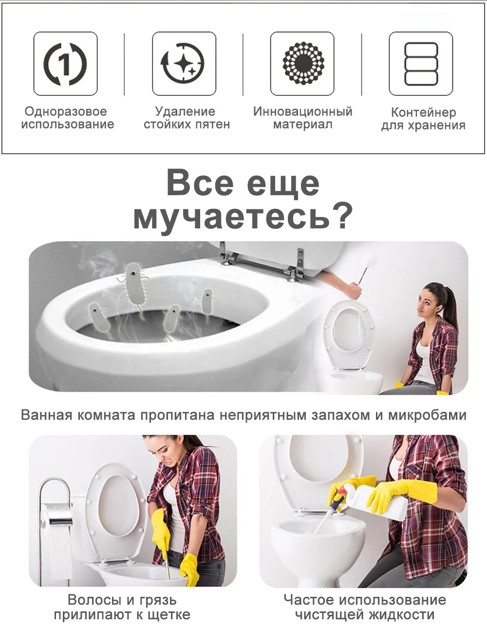 1. Одноразовая щётка для туалета с чистящей щеткой. Его можно легко заменить нажатием кнопки, не нужно касаться, легко сэкономить.2. Конструкция ручки удобна в хранении и легко чистится в углу унитаза.3. Водорастворимая головка щетки быстро выпустит Дезактивационные факторы, когда она соприкасается с водой. Сильное обеззараживание не повредит глазурь.4. После того, как головка кисти используется, она может быть отброшена. Его можно выбрасывать в мусорное ведро или бросать в унитаз для смывания, не вызывая закупорки.5. С базой для хранения, без грязи после использования, чистый и гигиеничный.