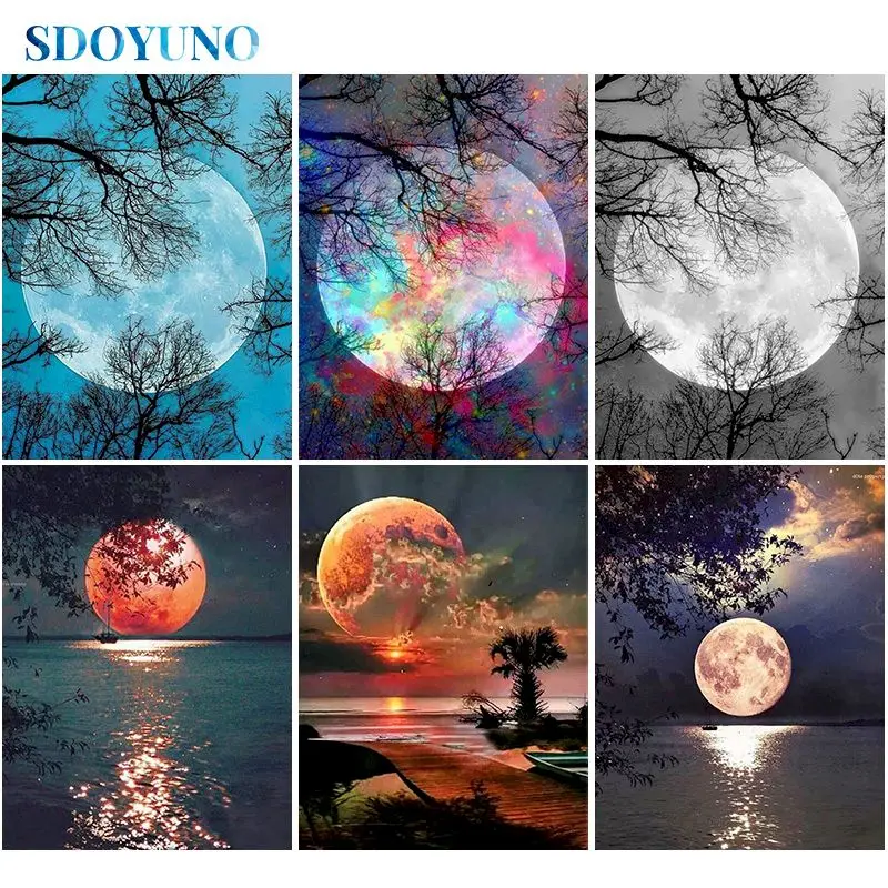 SDOYUNO полноразмерная квадратнаякруглая алмазная живопись Луна 5D Сделай Сам Алмазная вышивка мозаика ландшафт искусство бриллиант