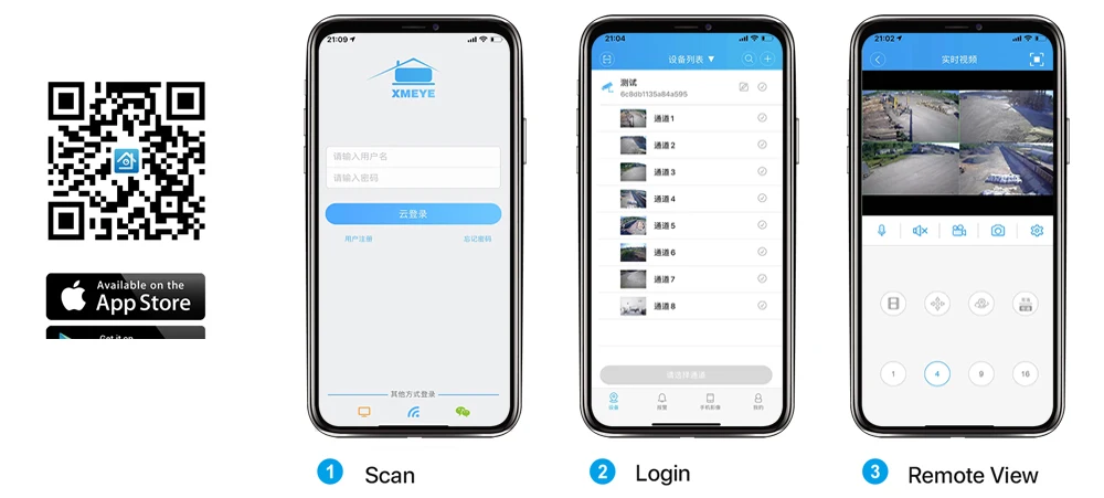 Легкий Удаленный доступ в любое время в любом местеТехнология P2P поддерживает удаленный доступ к мобильному устройству, просто вставьте приложение на свой телефон, сканируя QR cade или сохраняя его из приложения, удаленно просматривайте камеру в любое время и в любом месте. ПК использует www.xmeye.net для посещения камеры.