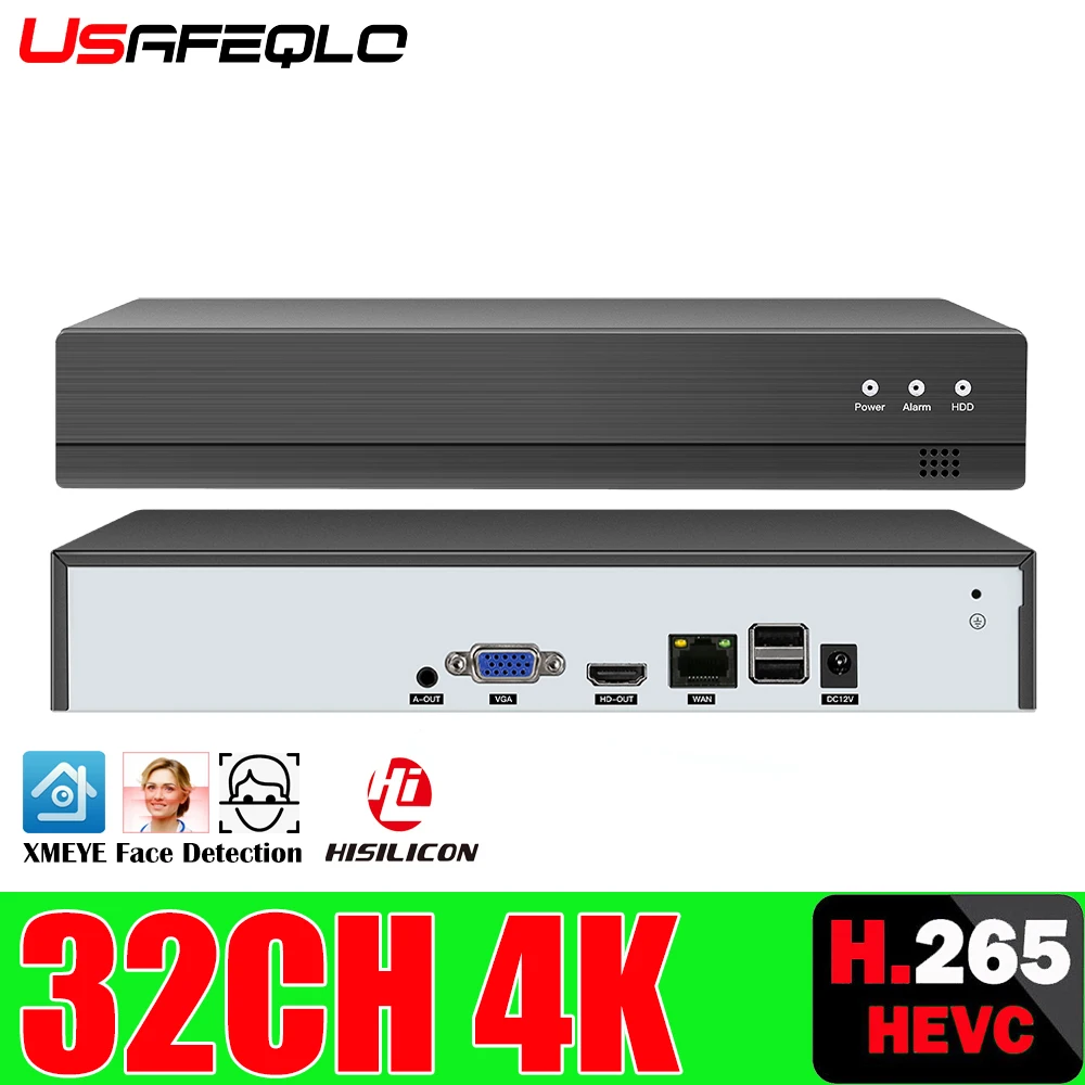 16CH 32CH * 4K ONVIF H.265H.264 Поддержка 1 SATA NVR сетевой цифровой видеорегистратор до 8 ТБ XMEYE CMS с кабелем P2P облачный мобильный