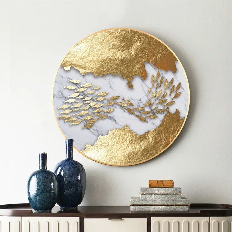 Абстрактный Золотой Картина на холсте с изображением рыб с нордичес...