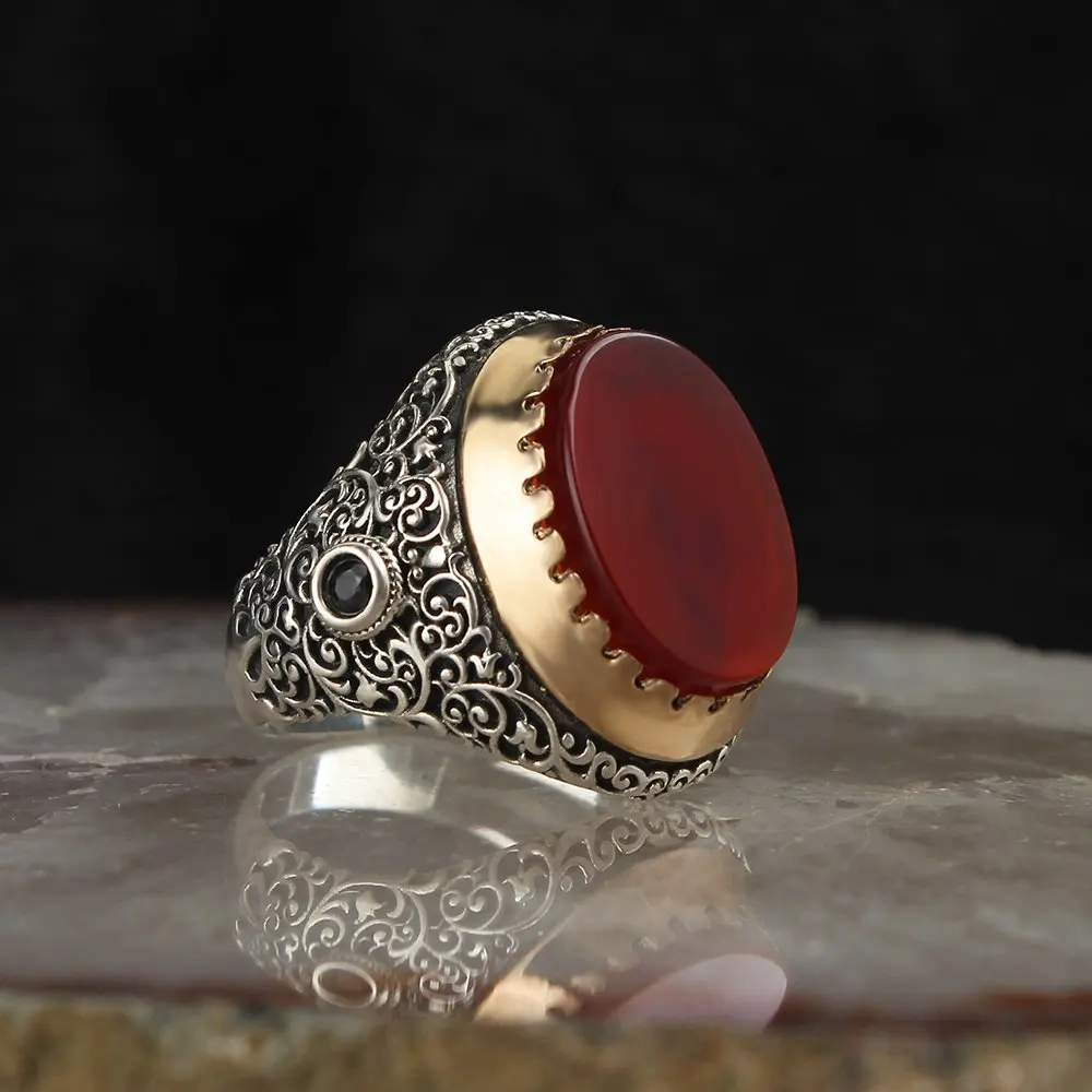 Мужские кольца с турецким агатом Ye men e Aqeeq из серебра 925 пробы