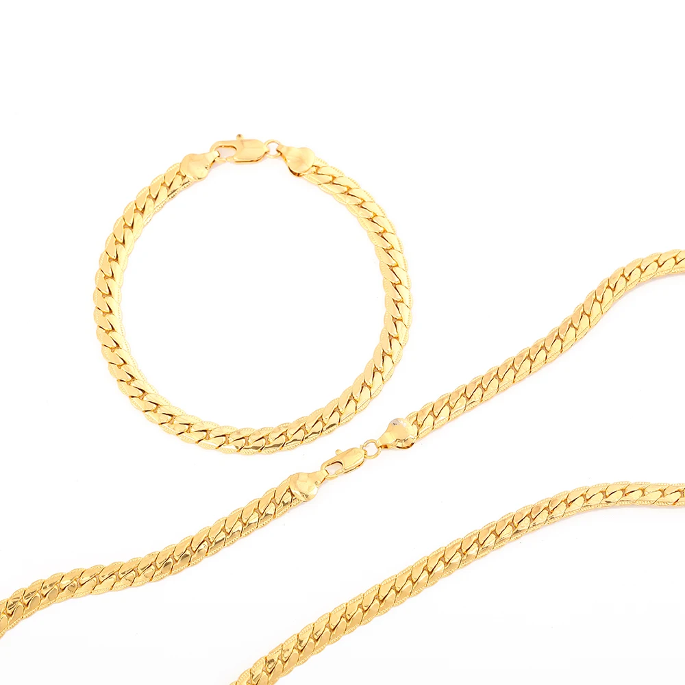 Комплект ювелирных изделий для мужчин и женщин, комплект из ожерелья и браслета из цепочки с боковыми звеньями, 18 К золота, 5 мм, 2 шт.