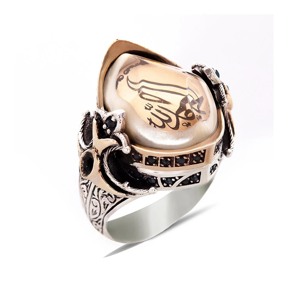 Elhamdlillah написано Меч Модель Янтарный 925 пробы серебро Для мужчин, кольцо, кольцо из нержавеющей стали