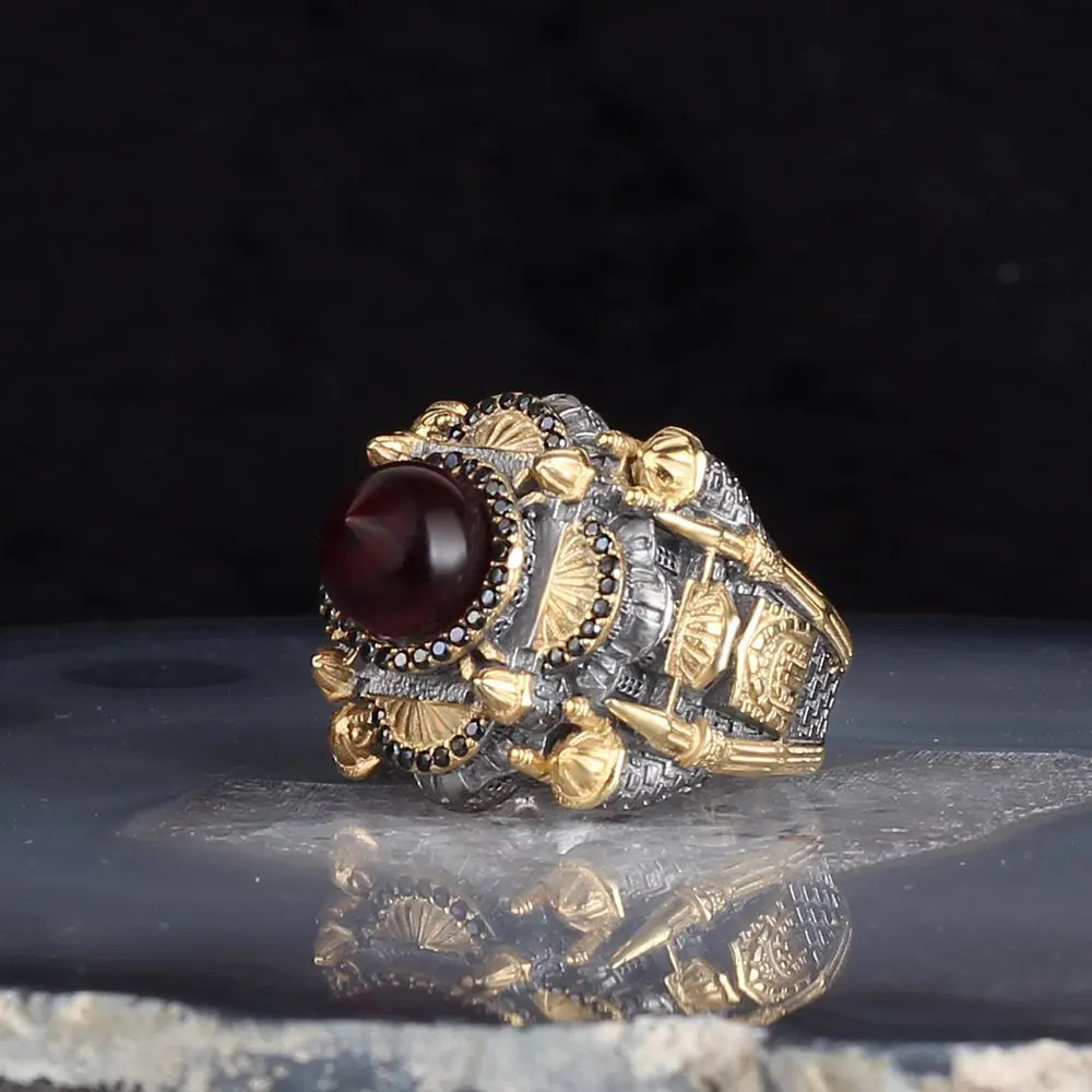 Мужские кольца с турецким агатом Ye men e Aqeeq из серебра 925 пробы