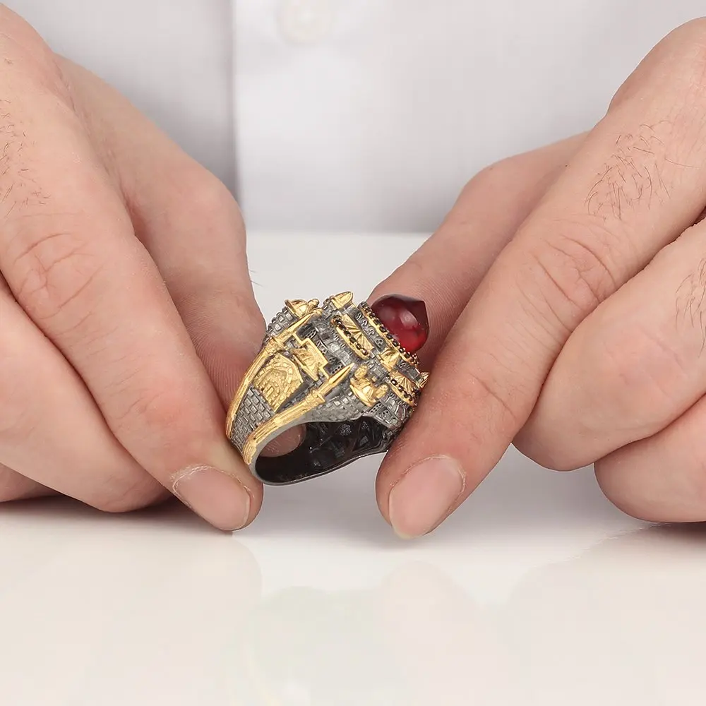 Красный Камень Циркон 925 пробы серебро Для мужчин, кольцо, кольцо ...