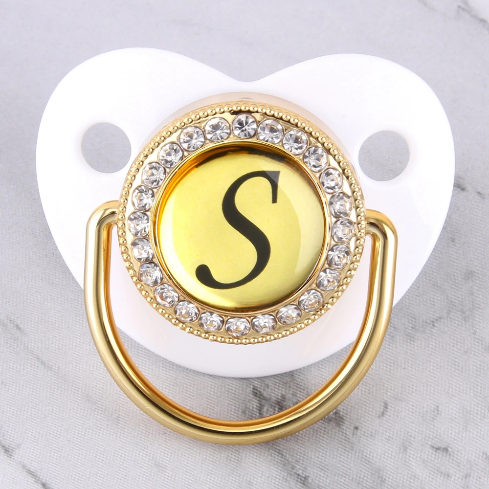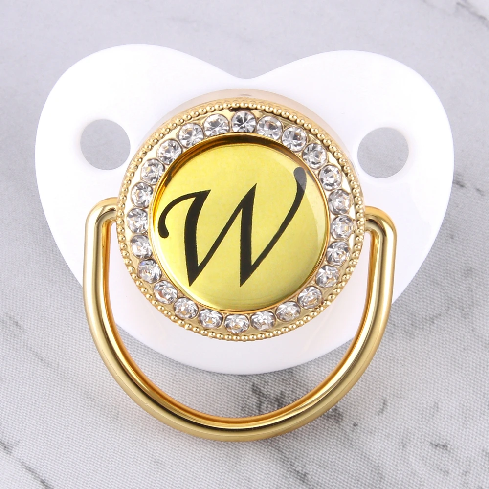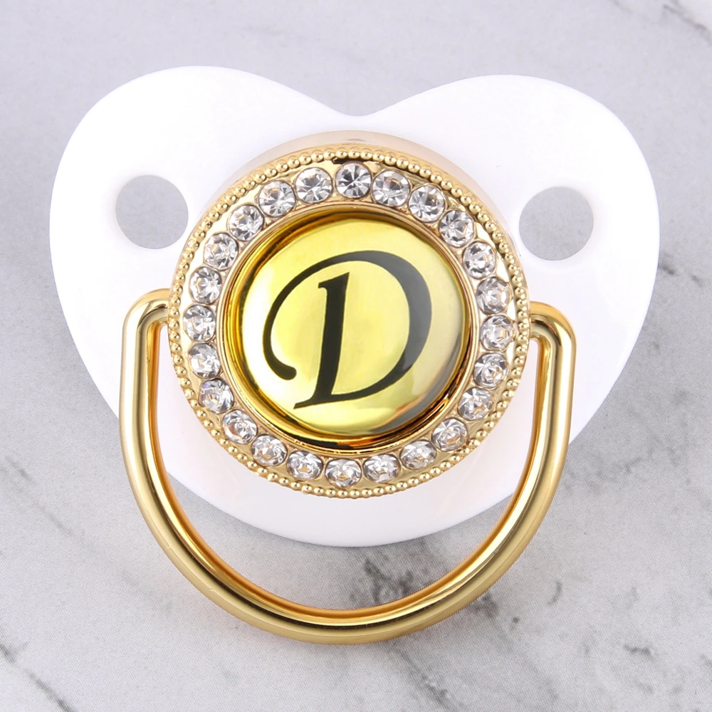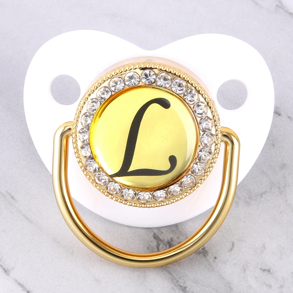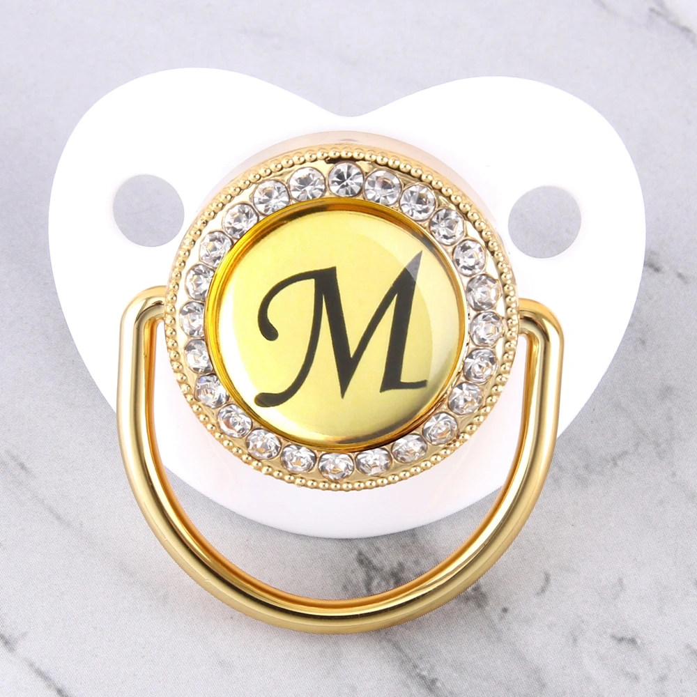26 золотых букв, роскошная белая детская пустышка, стразы, 0-12 месяцев, Силиконовая пустышка для новорожденных