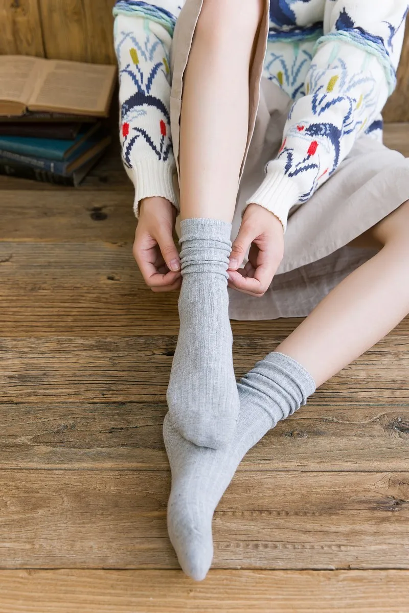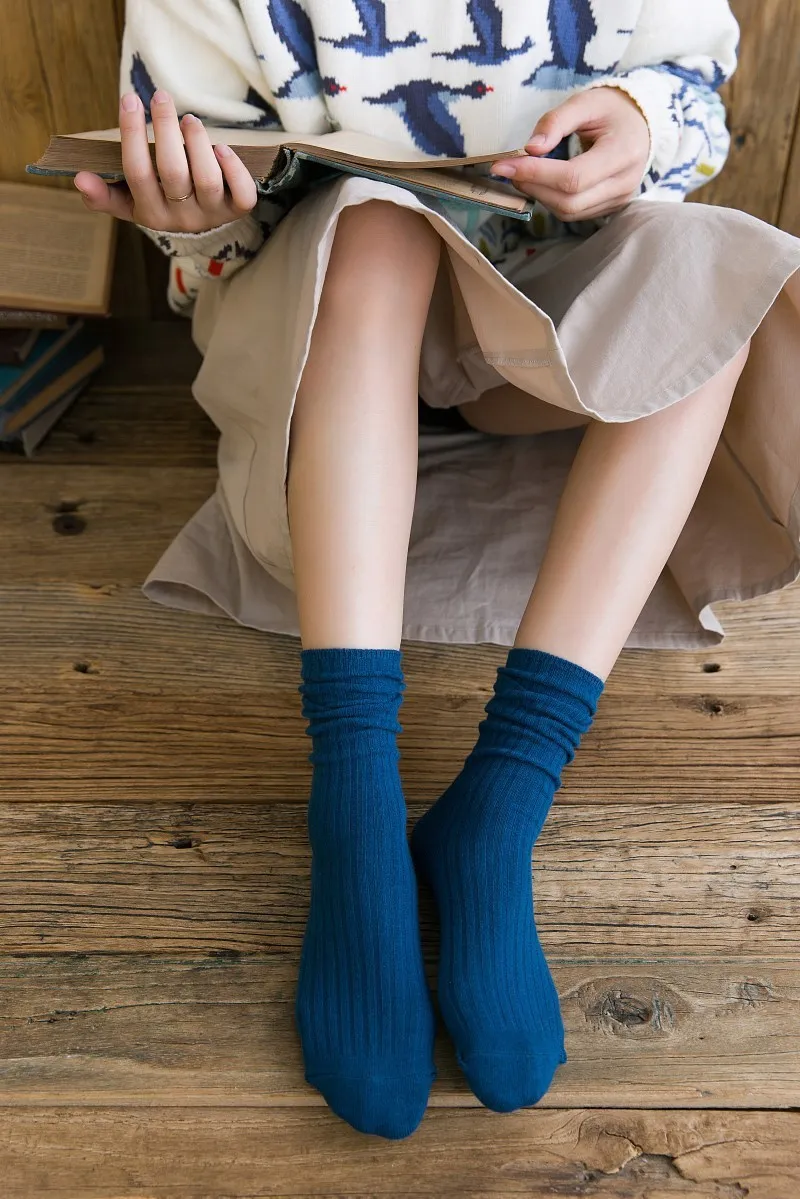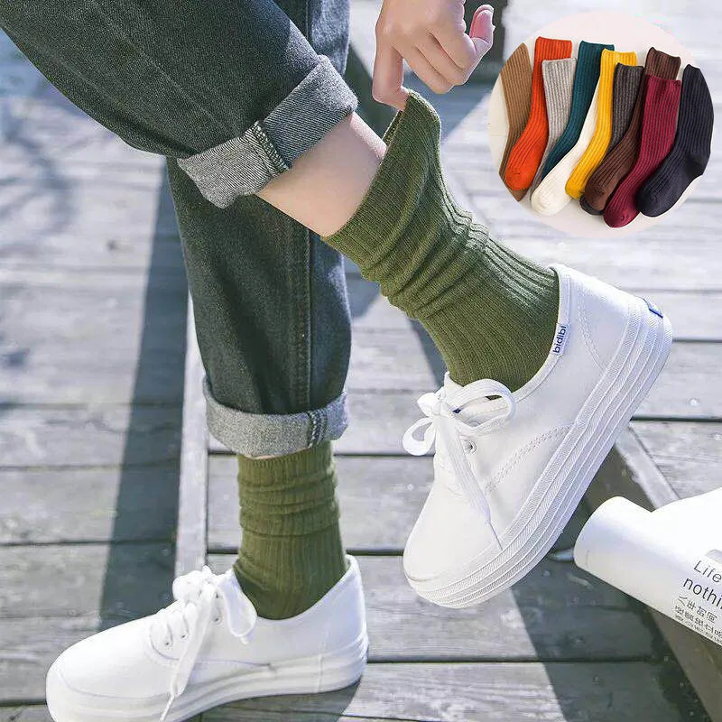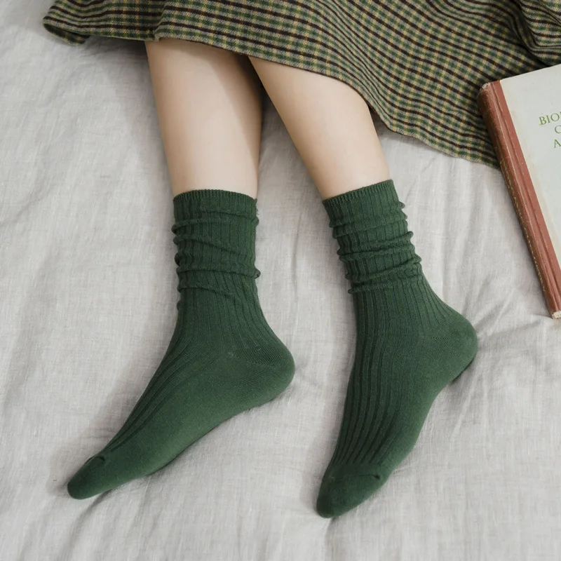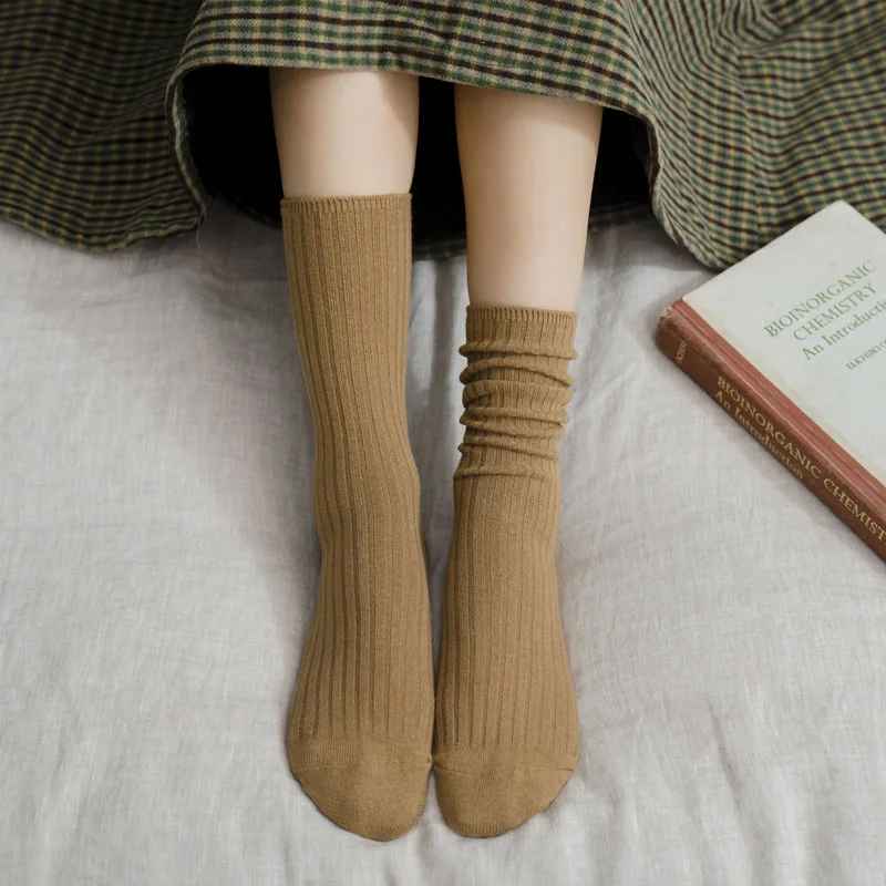 Носки CHAOZHU 3 парыкомпл. Женские базовые, хлопковые однотонные в японском стиле, свободного покроя, в рубчик, цвета хаки, розового, желтого цветов, для 4 сезонов