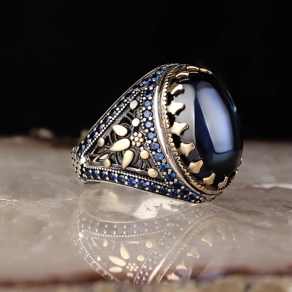Мужские кольца с турецким агатом Ye men e Aqeeq из серебра 925 пробы
