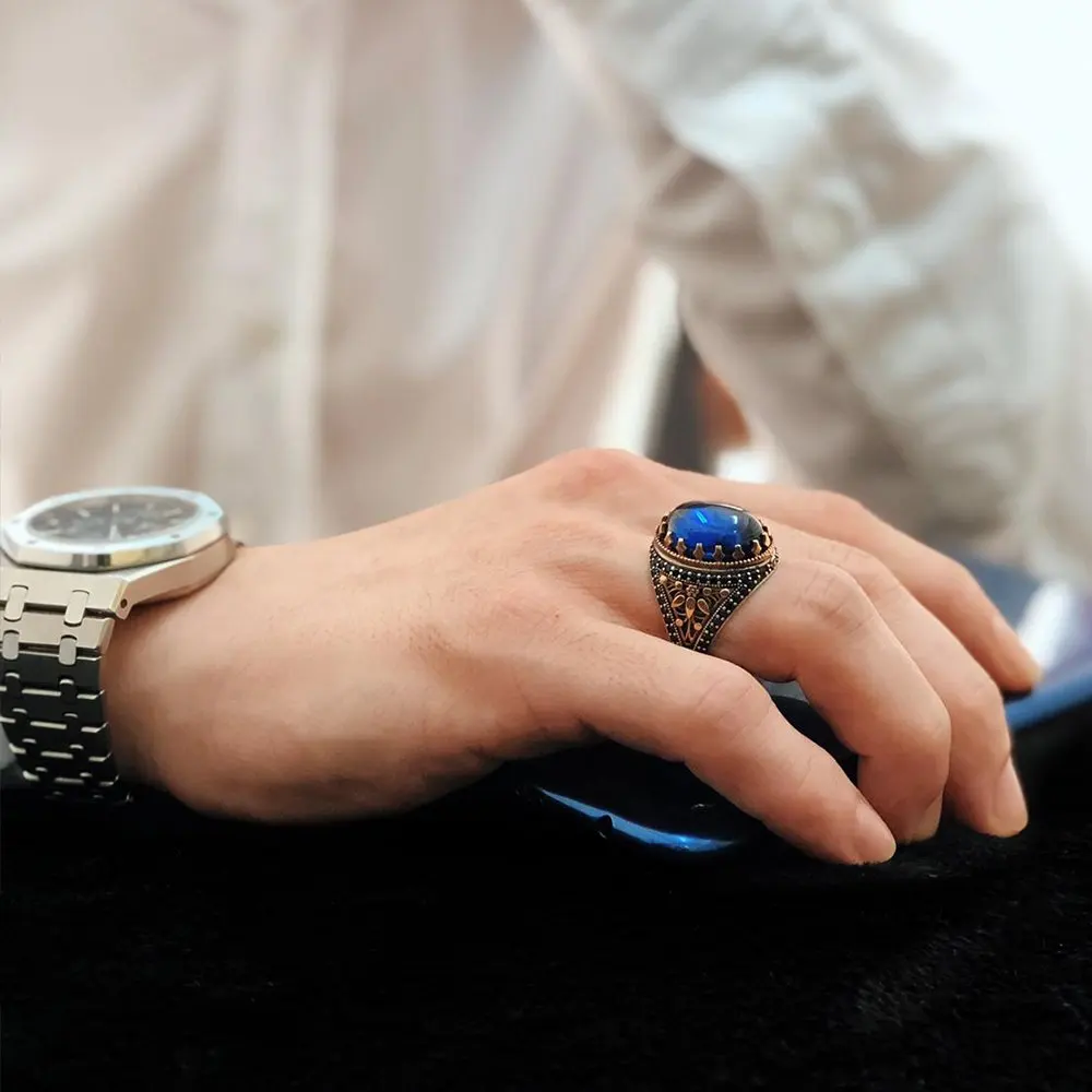 Синий тигровый глаз драгоценный камень 925 пробы серебро Для мужчин...