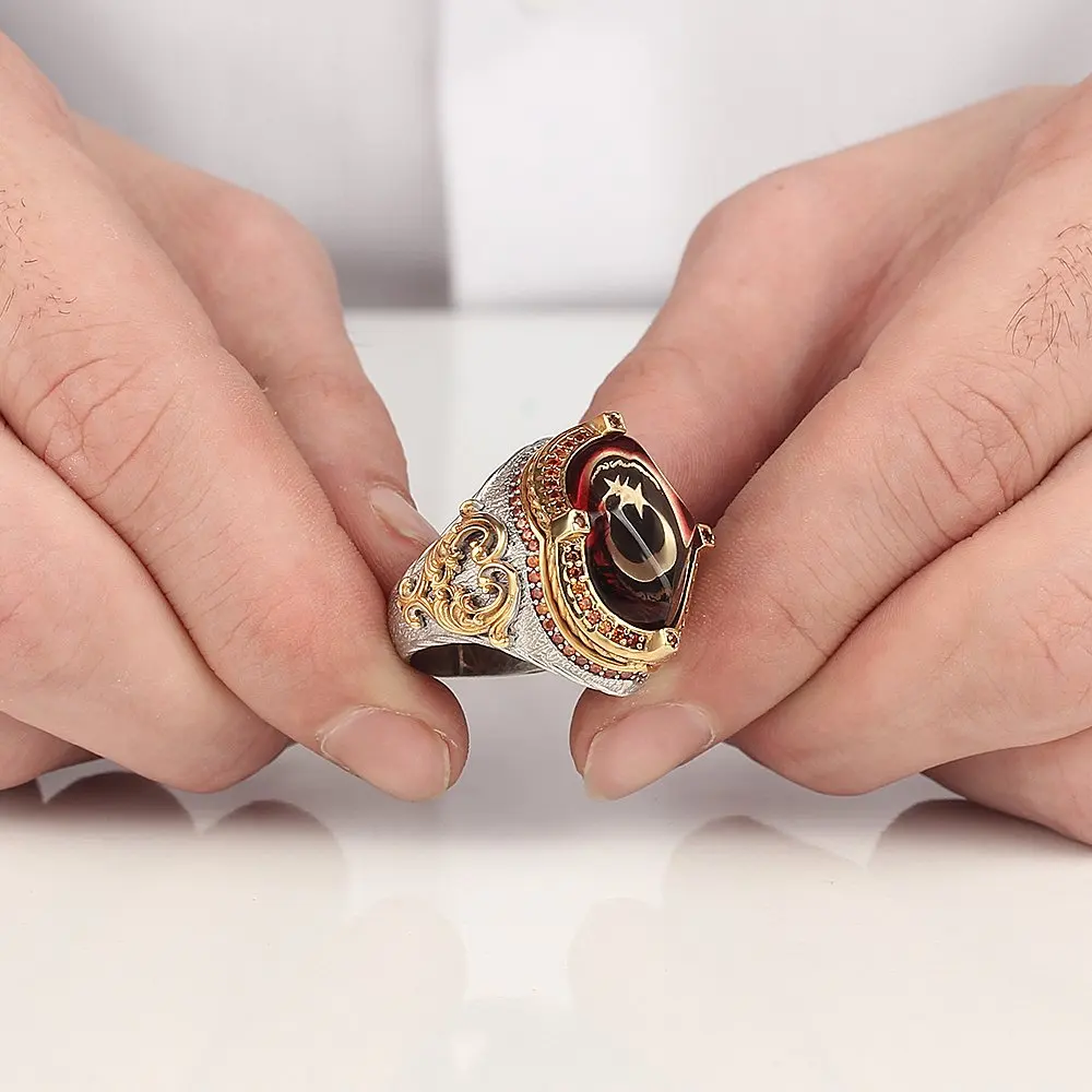 Мужские кольца с турецким агатом Ye men e Aqeeq из серебра 925 пробы