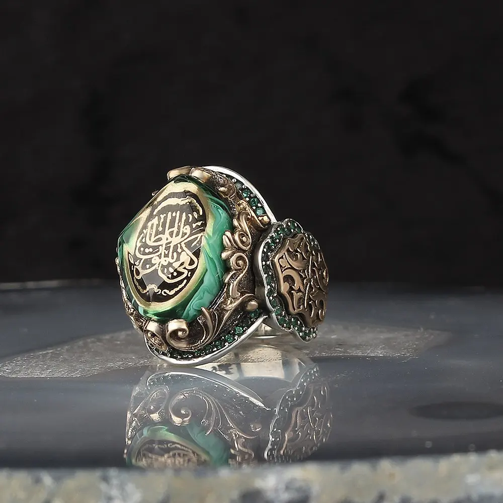 Elhamdlillah написано Меч Модель Янтарный 925 пробы серебро Для муж...