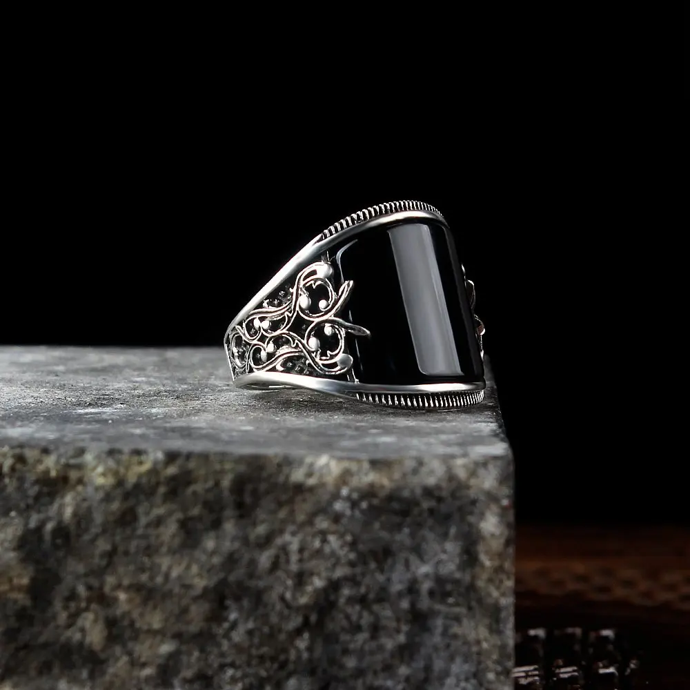 Мужские кольца с турецким агатом Ye men e Aqeeq из серебра 925 пробы