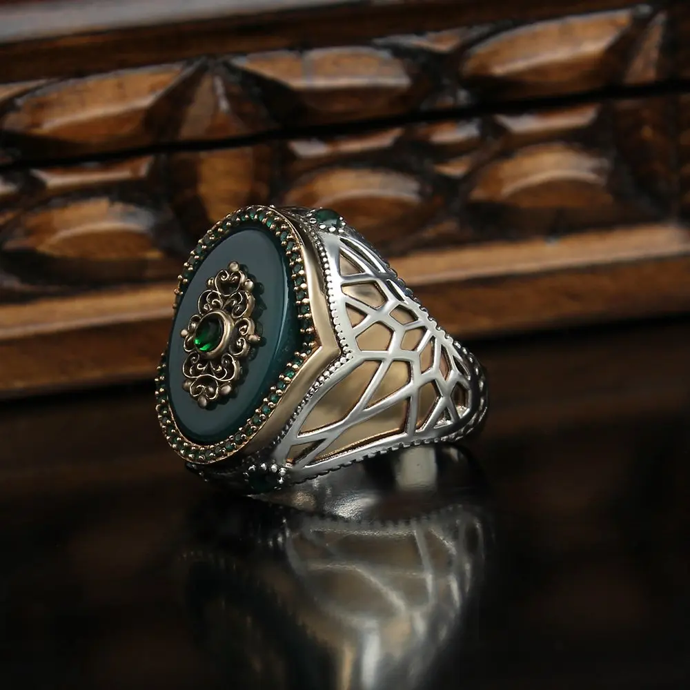 Мужские кольца с турецким агатом Ye men e Aqeeq из серебра 925 пробы