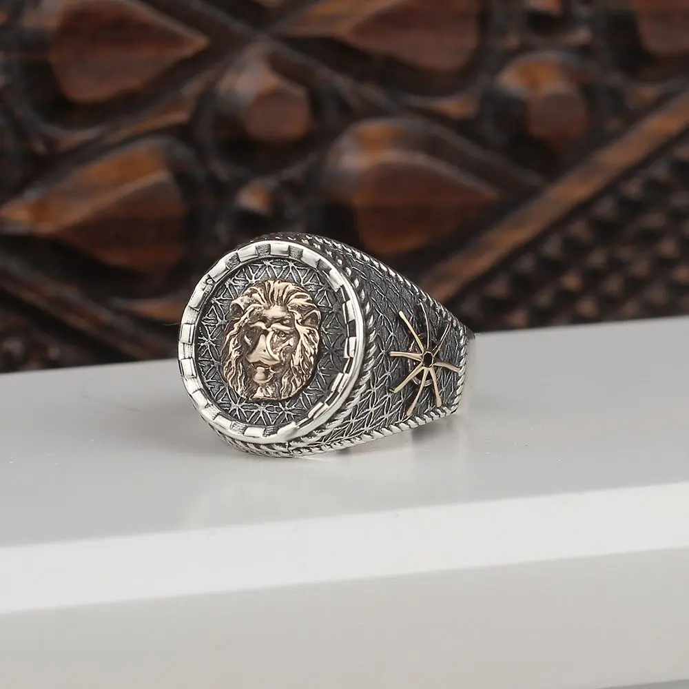 Мужское кольцо из серебра 925 пробы с янтарным камнем в османском с...