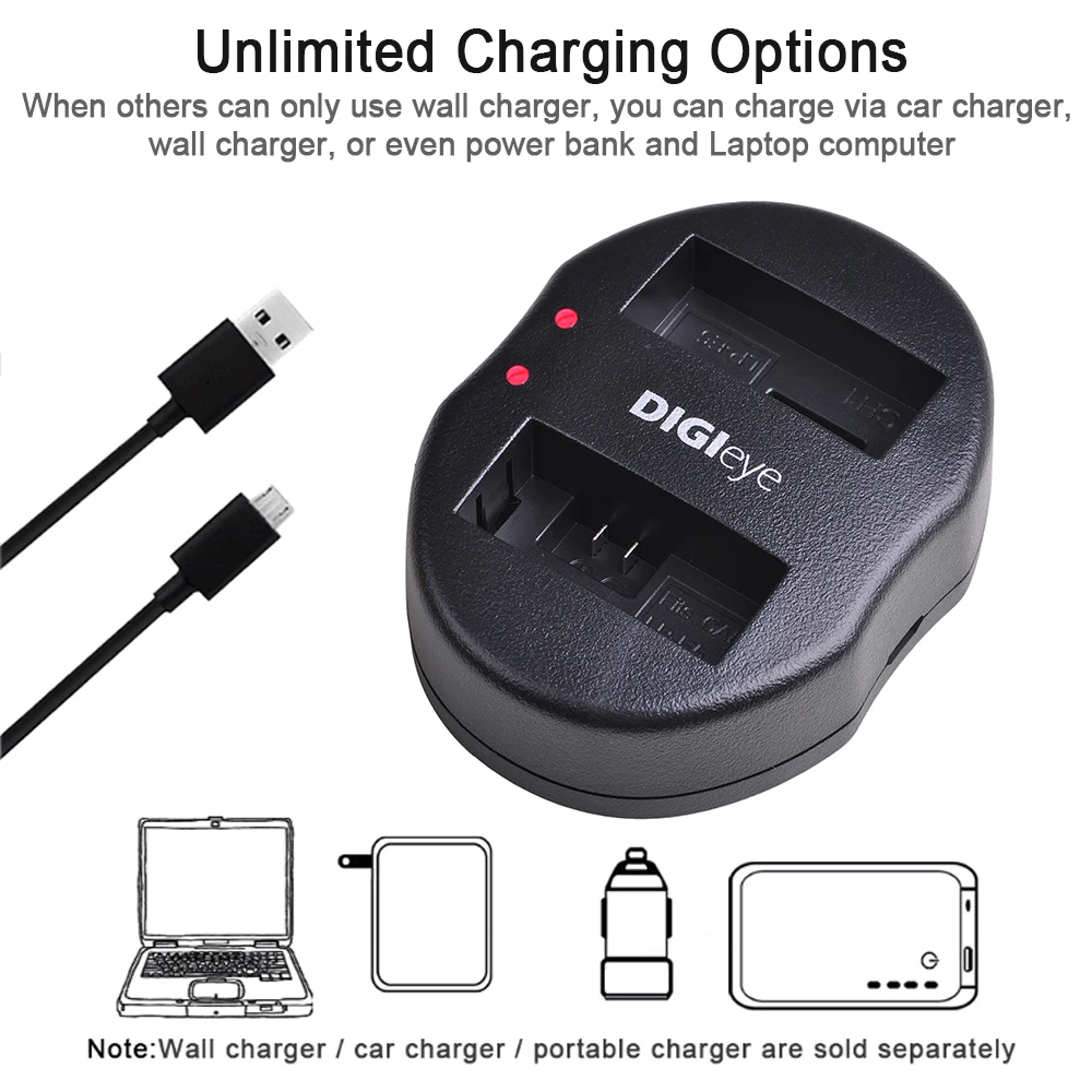 Благодаря входу micro-USB вы можете заряжать аккумулятор с помощью настенного зарядного устройства, автомобильного зарядного устройства и внешнего аккумулятора. Портативный зарядный набор удобно носить с собой в поездках, не нужно беспокоиться о нехватке энергии.Лучшая производительность, большее значениеПосле 600 зарядки аккумулятор по-прежнему наполнен энергией. Нет эффекта памяти, чтобы вы могли заряжать аккумулятор в любое время.